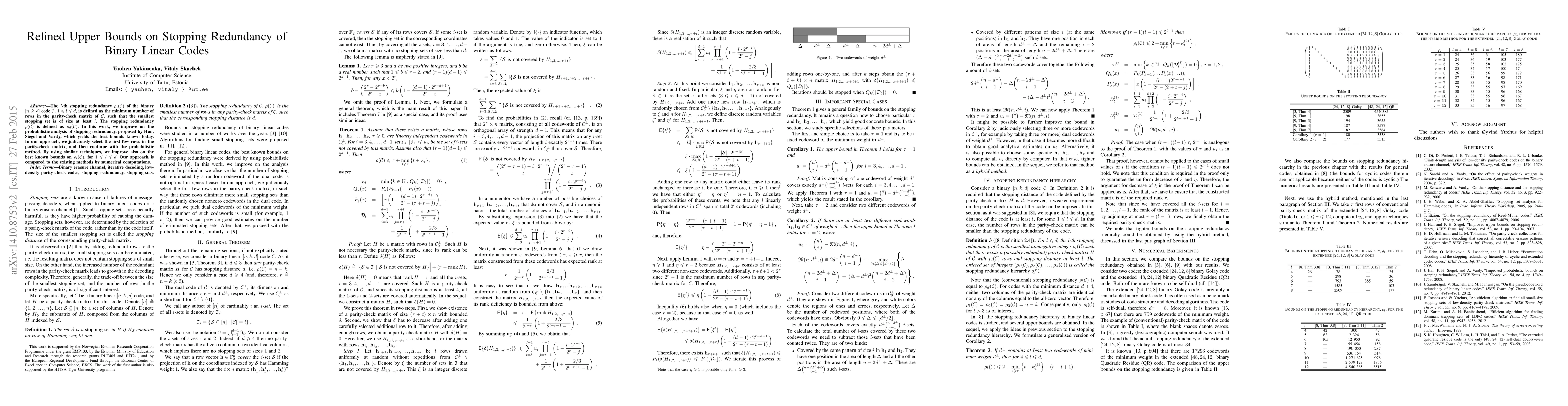 Researchers improved upon existing bounds on stopping redundancy in binary linear codes, enabling more accurate calculations of minimum stopping set sizes.
