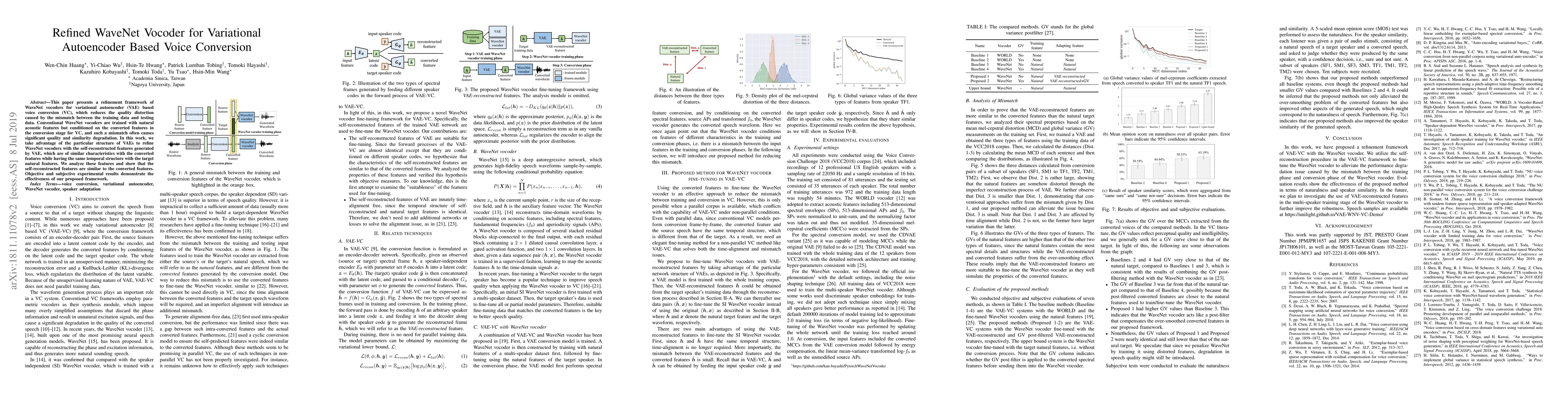 This paper proposes a refined WaveNet vocoder framework for variational autoencoder-based voice conversion, utilizing self-reconstructed features from VAEs to reduce quality distortion from data mismatch. Experimental results show improved voice conversion quality and similarity.