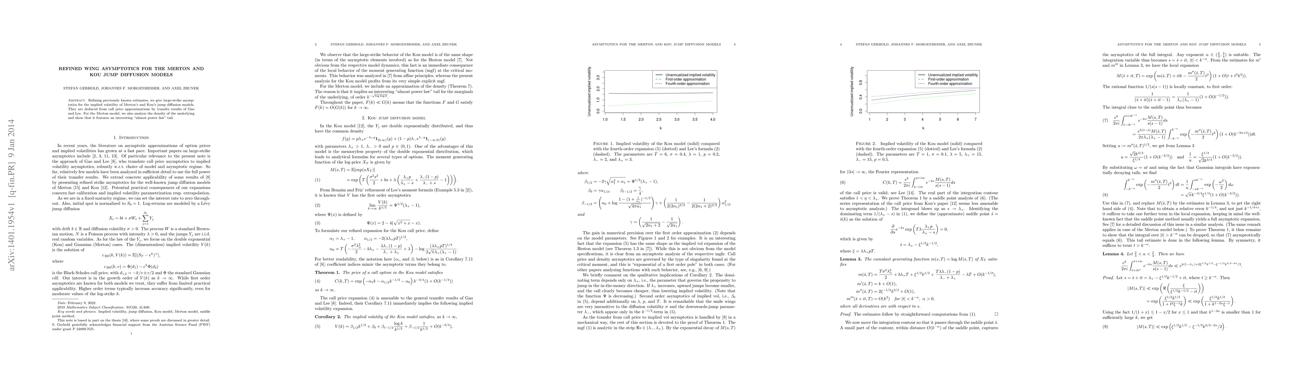 This paper refines large-strike asymptotics for implied volatility in Merton's and Kou's jump diffusion models, providing call price approximations and analyzing the underlying density, which exhibits an "almost power law" tail for the Merton model. The results are derived from transfer results by Gao and Lee.