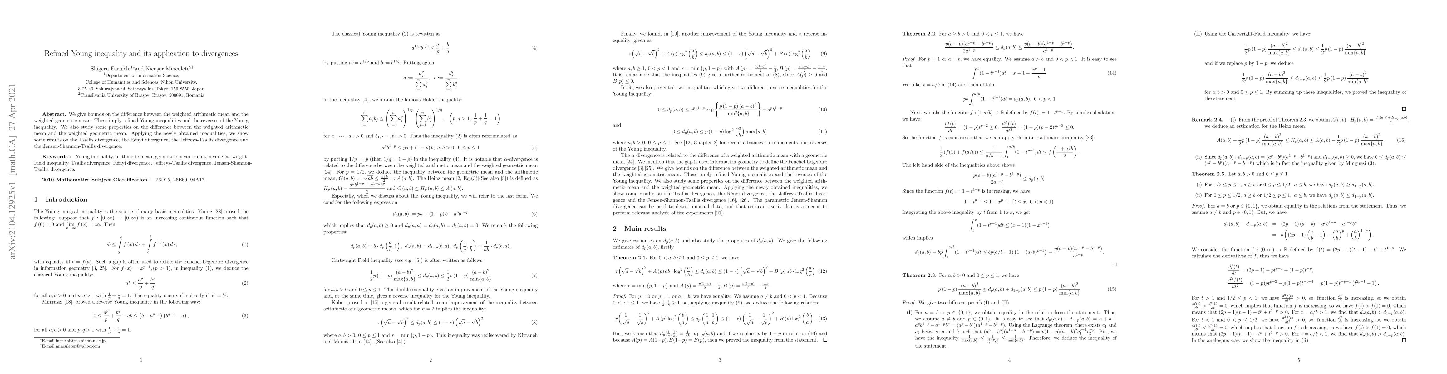 This paper refines Young inequalities by providing bounds on the difference between weighted arithmetic and geometric means, and applies these refined inequalities to derive results for Tsallis, Rényi, Jeffreys-Tsallis, and Jensen-Shannon-Tsallis divergences.
