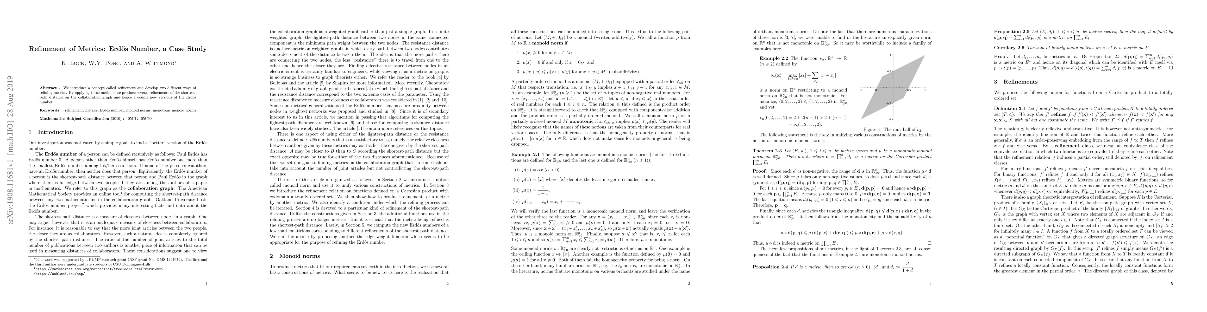We introduce a concept called refinement and develop two different ways of refining metrics. By applying these methods we produce several refinements of the shortest-path distance on the collaboration graph and hence a couple new versions of the Erd\H{o}s number.