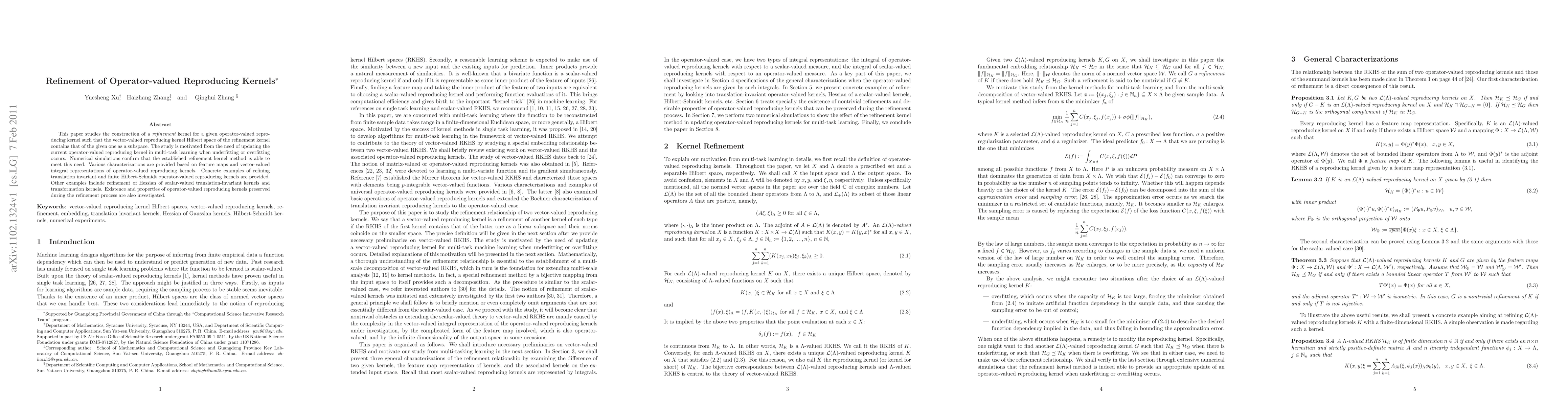 This paper develops a method to construct a refinement kernel for given operator-valued reproducing kernels, ensuring the refined kernel's Hilbert space contains the original one's, aiding multi-task learning adjustments. Numerical simulations validate the effectiveness of this refinement approach.