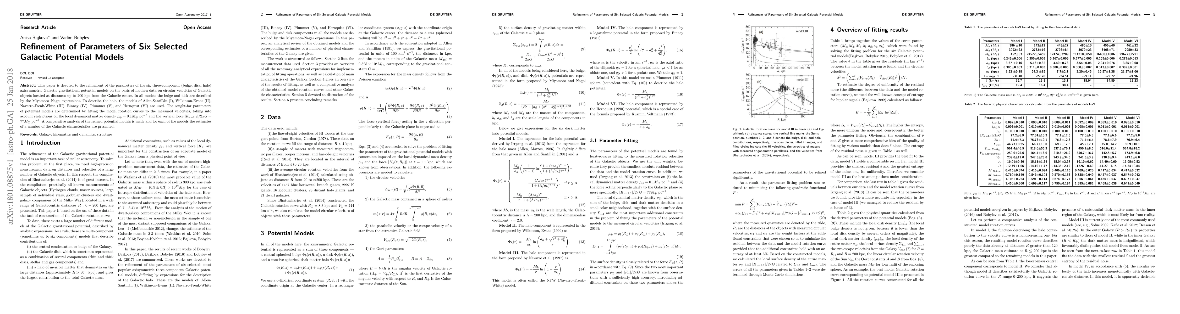 This paper refines parameters for six galactic potential models using modern data on circular velocities of objects up to 200 kpc from the Galactic center, fitting the models to measured rotation curves and presenting comparative analysis and estimates of Galactic characteristics.