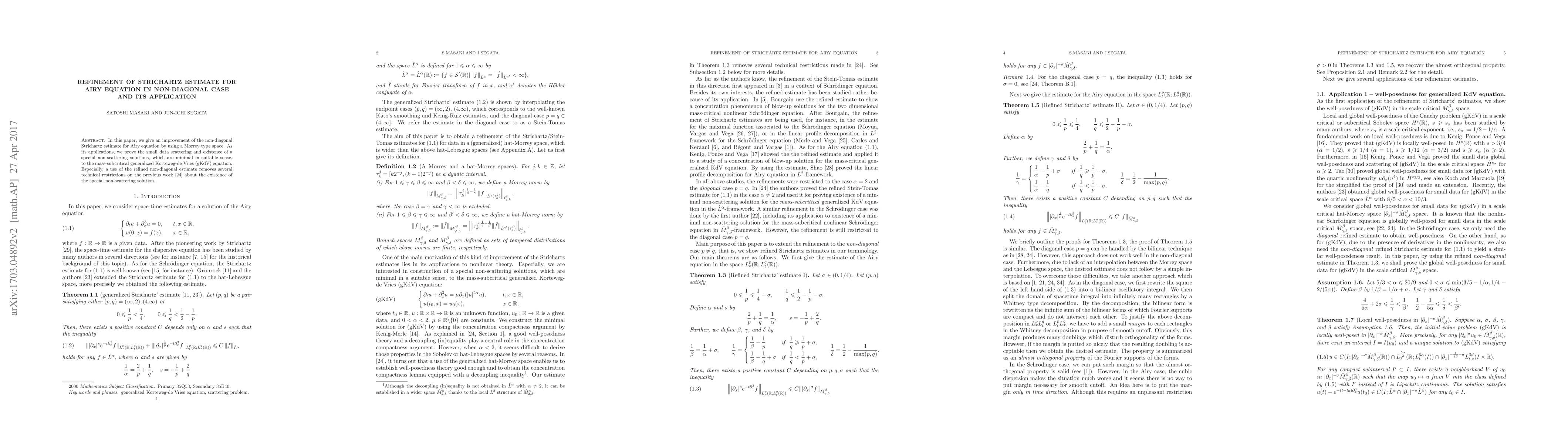 In this paper, we give an improvement of the Strichartz estimate for Airy equation in the non-diagonal case. As an application, we prove the small data scattering and existence of a special non-scattering solutions, which are minimal in suitable sense, to the mass-subcritical generalized Korteweg-de Vries (gKdV) equation. Especially, we remove several technical restrictions on our previous work about the existence of a special non-scattering solution.