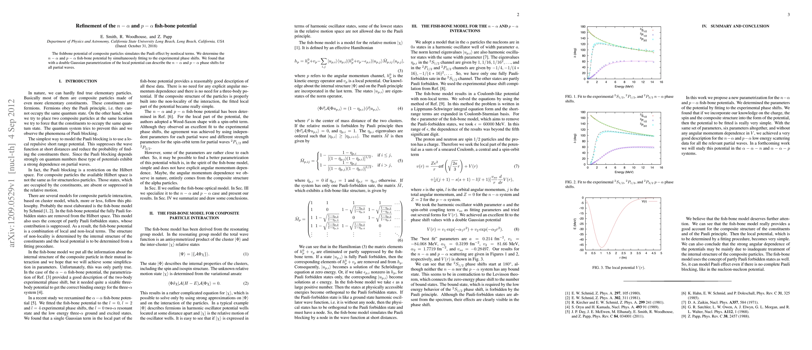 Researchers refined a fishbone potential model for composite particles, successfully fitting experimental phase shifts with a double Gaussian parametrization of the local potential, applicable to all partial waves.