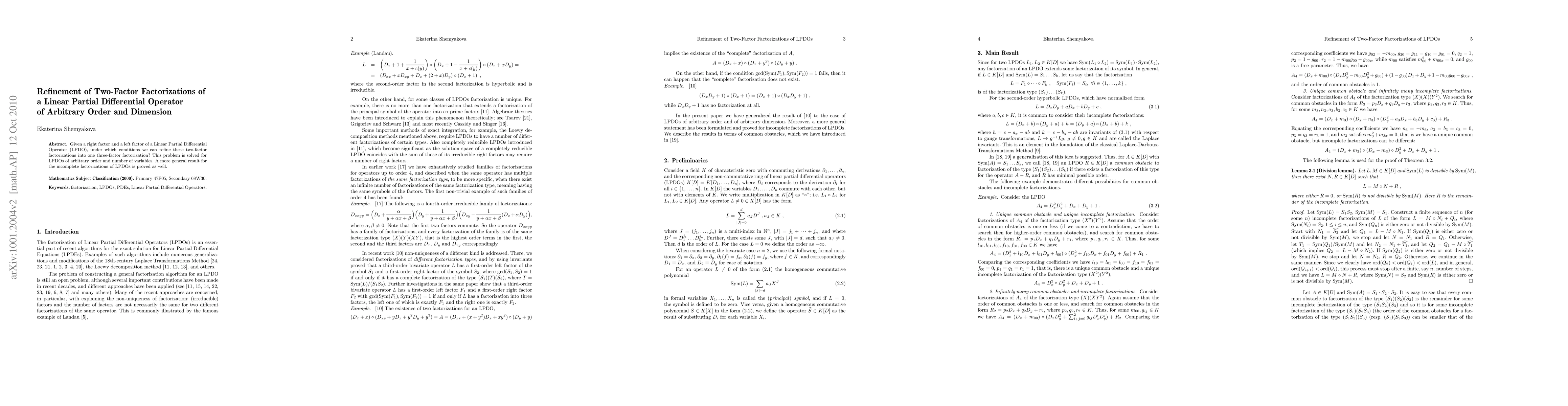 Researchers developed a method to refine two-factor factorizations of linear partial differential operators into one three-factor factorization, applicable to LPDOs of arbitrary order and dimension.
