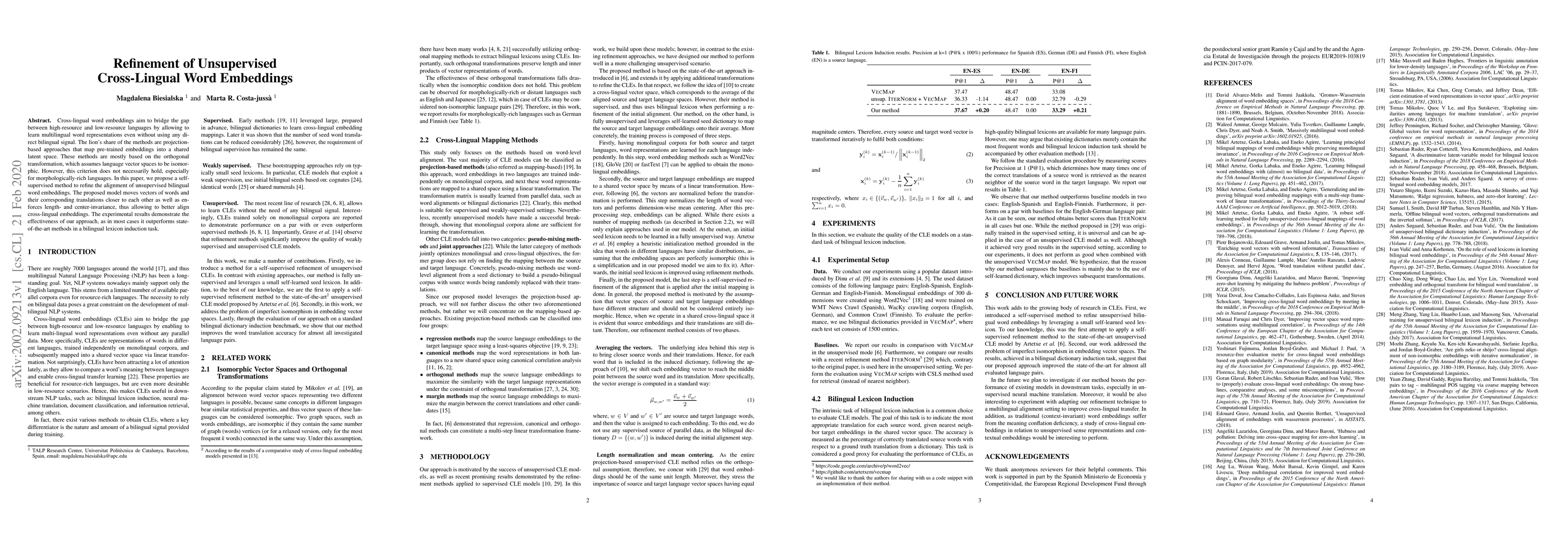 This paper introduces a self-supervised method to refine unsupervised cross-lingual word embeddings, enhancing alignment by enforcing length- and center-invariance, and outperforming existing projection-based approaches in bilingual lexicon induction tasks.