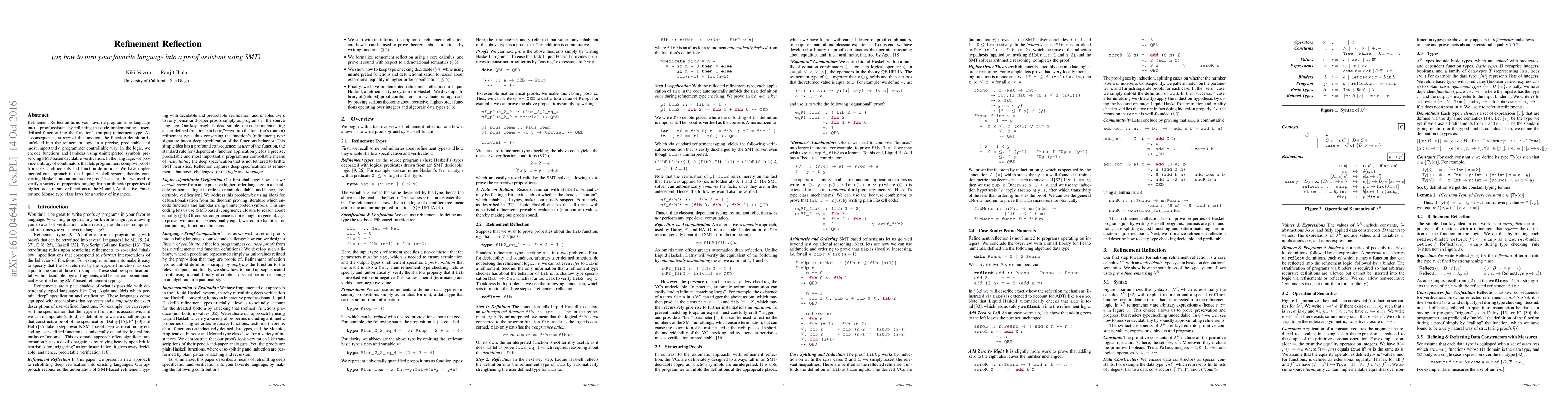 This paper presents Refinement Reflection, a technique to convert a programming language into a proof assistant by reflecting function implementations into their refinement types. This method enables precise, predictable, and programmer-controlled unfolding of function definitions into SMT-based logic, facilitating verification of properties and type class laws.