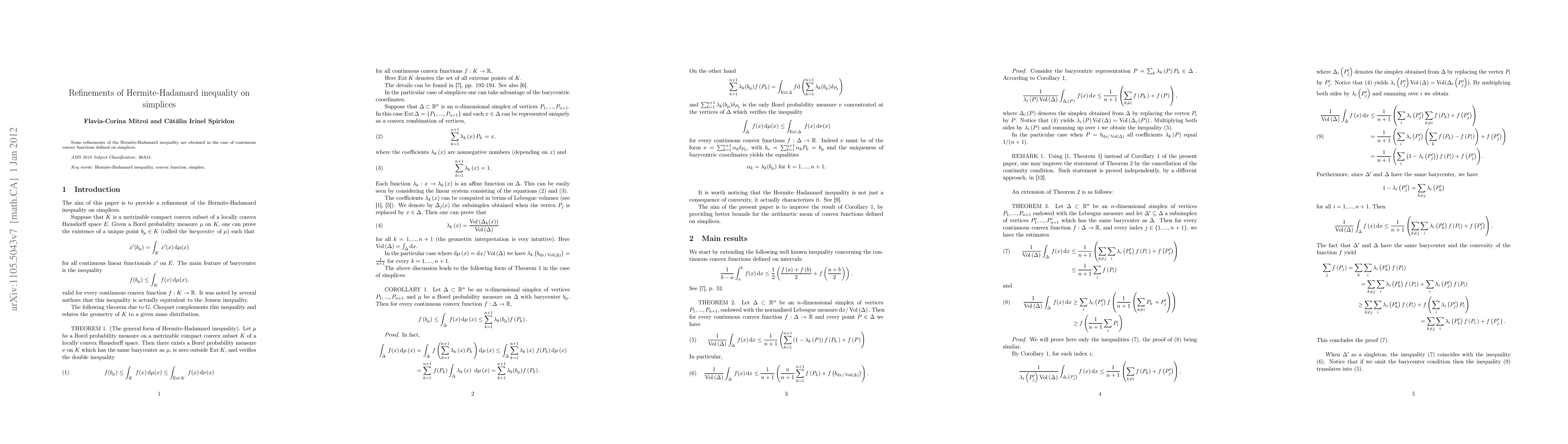 Summary: This paper presents refined versions of the Hermite-Hadamard inequality for continuous convex functions defined on simplices, offering improved bounds and insights into the properties of such functions.