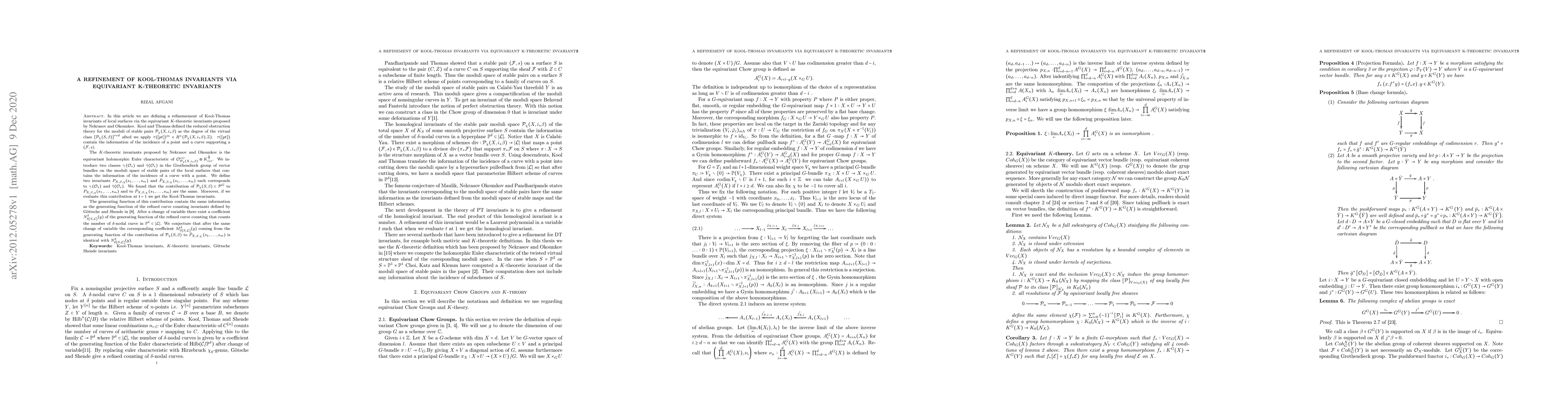 This paper refines Kool-Thomas invariants for local surfaces using equivariant $K$-theoretic invariants introduced by Nekrasov and Okounkov, enhancing the understanding of moduli spaces of stable pairs through virtual classes and incidence information. The focus is on the refined obstruction theory in the context of $\mathcal{P}_{\chi}(X,i_{*}\beta)$.