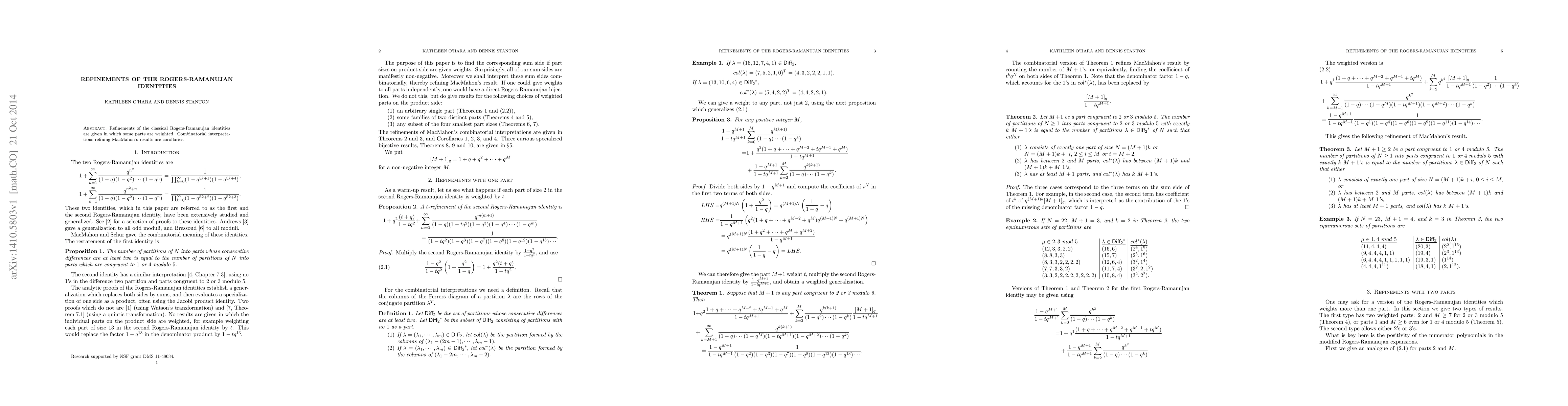 Refinements of the classical Rogers-Ramanujan identities are given in which some parts are weighted. Combinatorial interpretations refining MacMahon's results are corollaries.