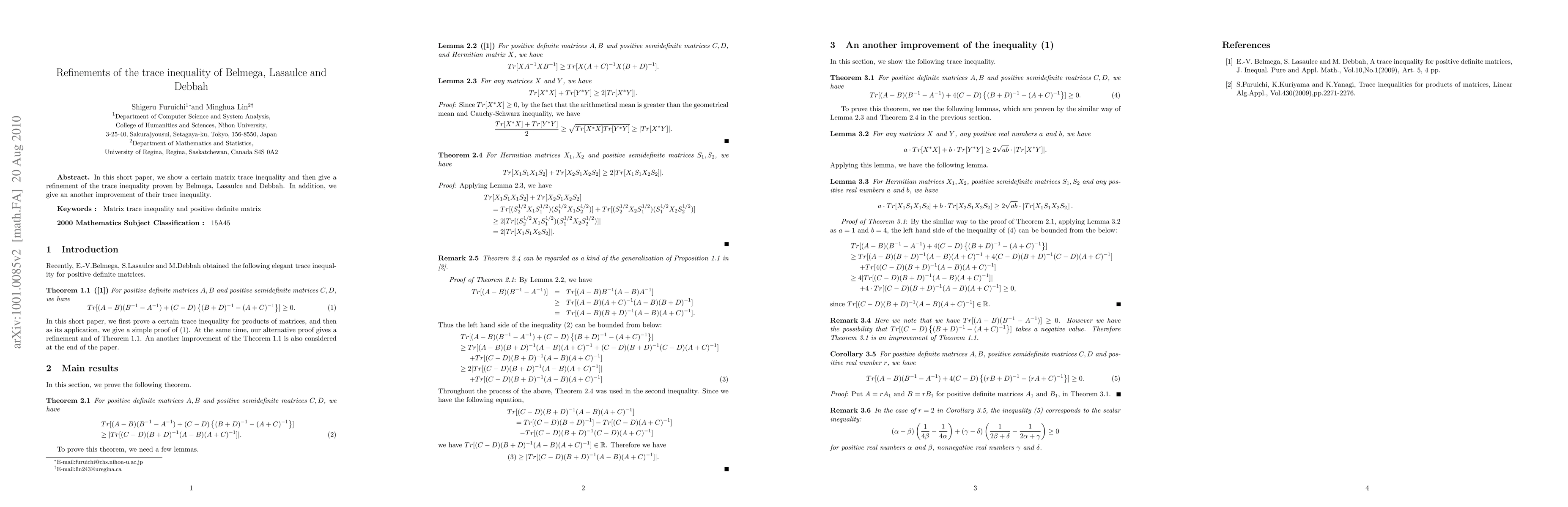 This paper presents a new matrix trace inequality and refines the trace inequality initially proven by Belmega, Lasaulce, and Debbah, offering an additional improvement to their established result.