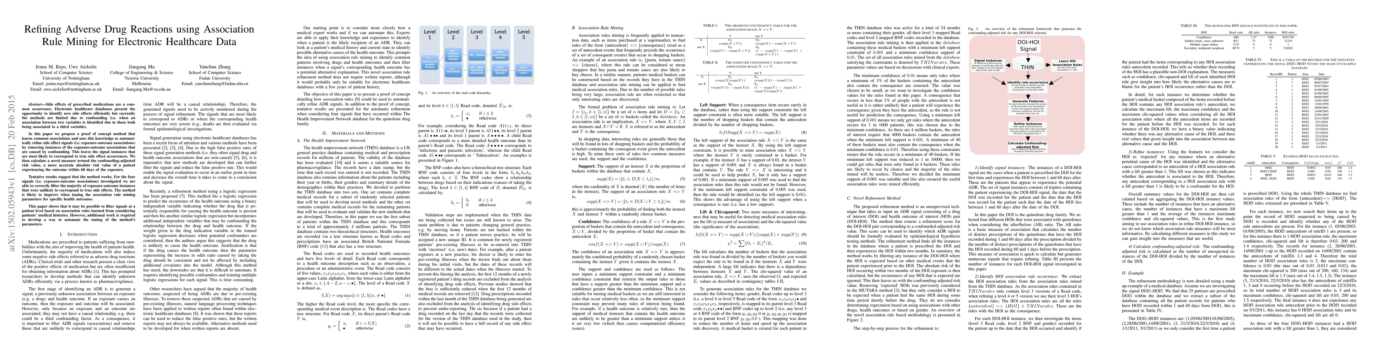 This paper proposes a method using association rule mining to refine adverse drug reaction signals in electronic healthcare data by identifying and removing confounding instances, thereby improving the accuracy of side effect detection. Initial results indicate the method's potential, though further parameter tuning is needed for specific health outcomes.