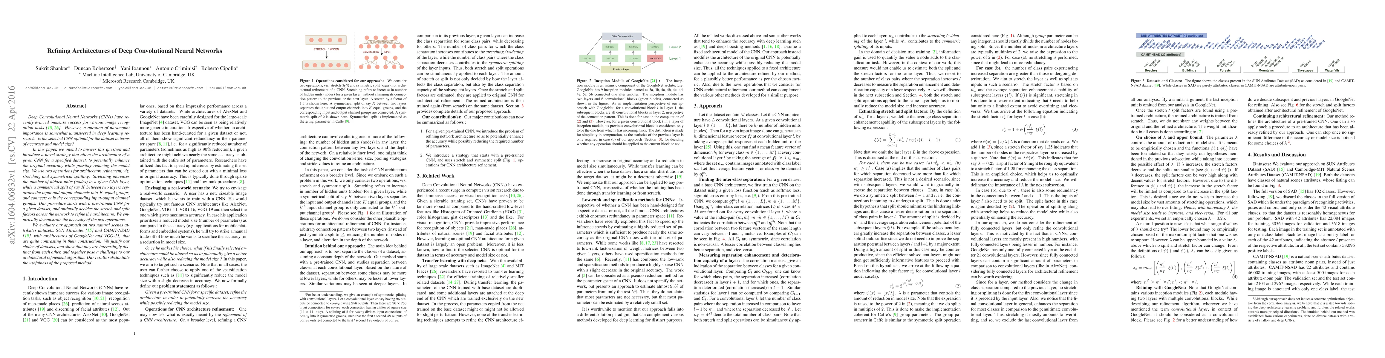 This paper presents a novel strategy to refine Deep Convolutional Neural Network (CNN) architectures for improved accuracy and reduced model size using stretching and symmetrical splitting operations. Evaluated on SUN Attributes and CAMIT-NSAD datasets with GoogleNet and VGG-11, the results demonstrate the method's effectiveness and challenge posed by diverse dataset architectures.