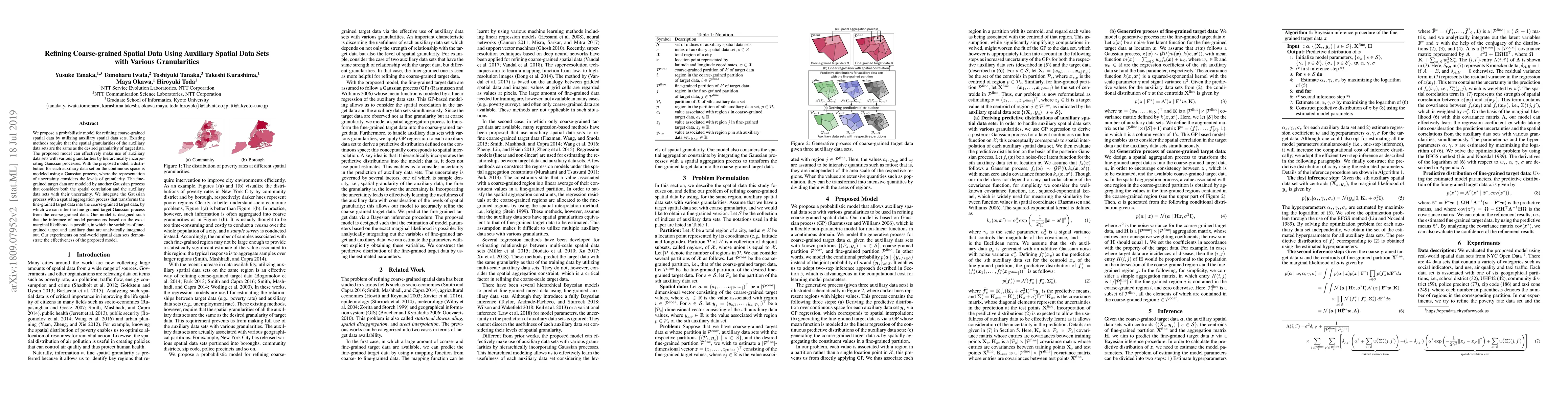 This paper proposes a probabilistic model to refine coarse-grained spatial data using auxiliary data sets of various granularities through hierarchical Gaussian processes. The model integrates fine-grained target data with auxiliary data, enabling inference of fine-grained target Gaussian processes from coarse-grained data, and demonstrates effectiveness on real-world datasets.