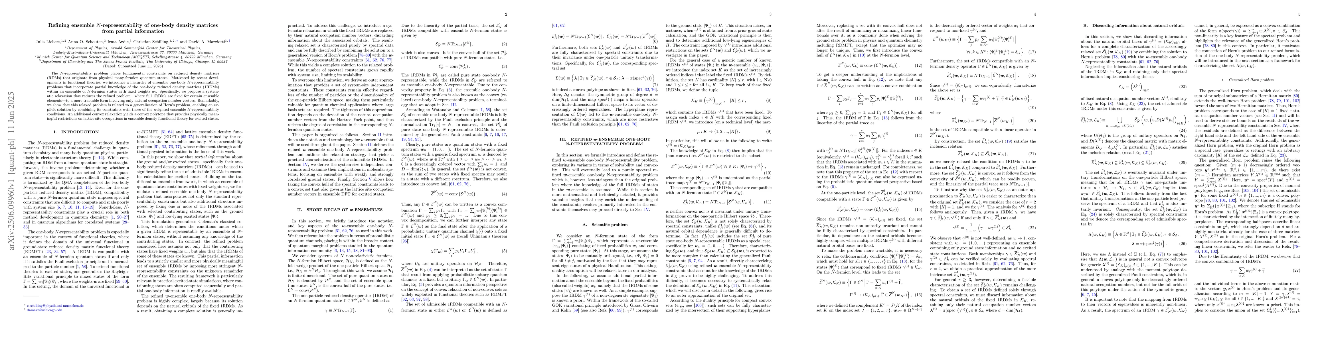 This research introduces a hierarchy of ensemble one-body $N$-representability problems for fermion states, incorporating partial 1RDM knowledge. It shows a connection to Horn's problem, enabling explicit solution, and provides convex relaxation for lattice site occupation restrictions in ensemble DFT for excited states.