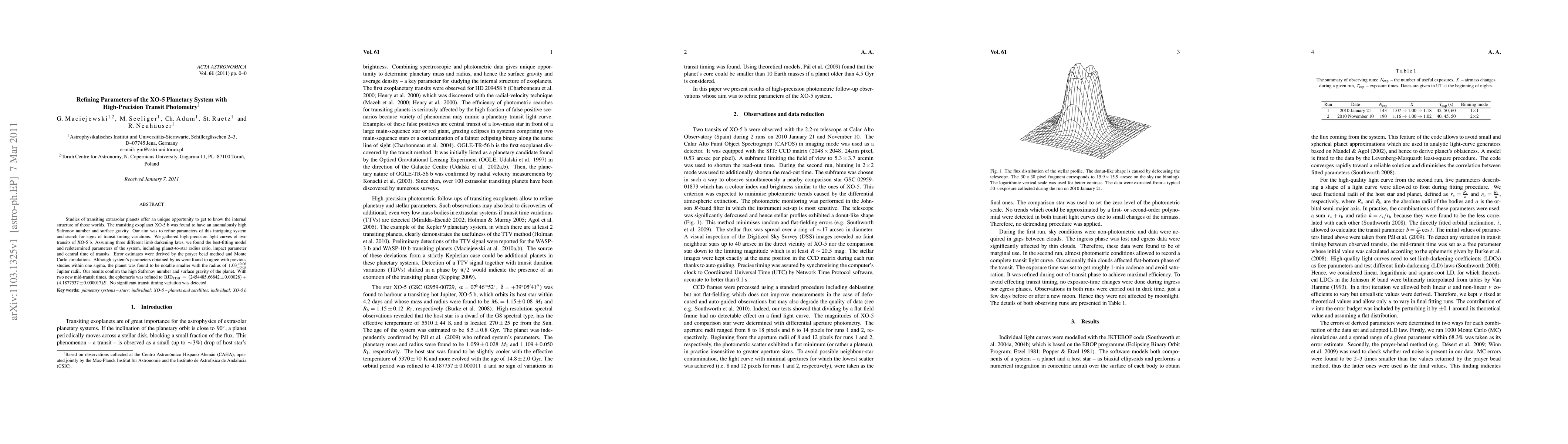 This study refines parameters of the XO-5 planetary system using high-precision transit photometry, finding the planet to be smaller with a radius of 1.03+0.06-0.05 Jupiter radii. The refined ephemeris shows no significant transit timing variation.