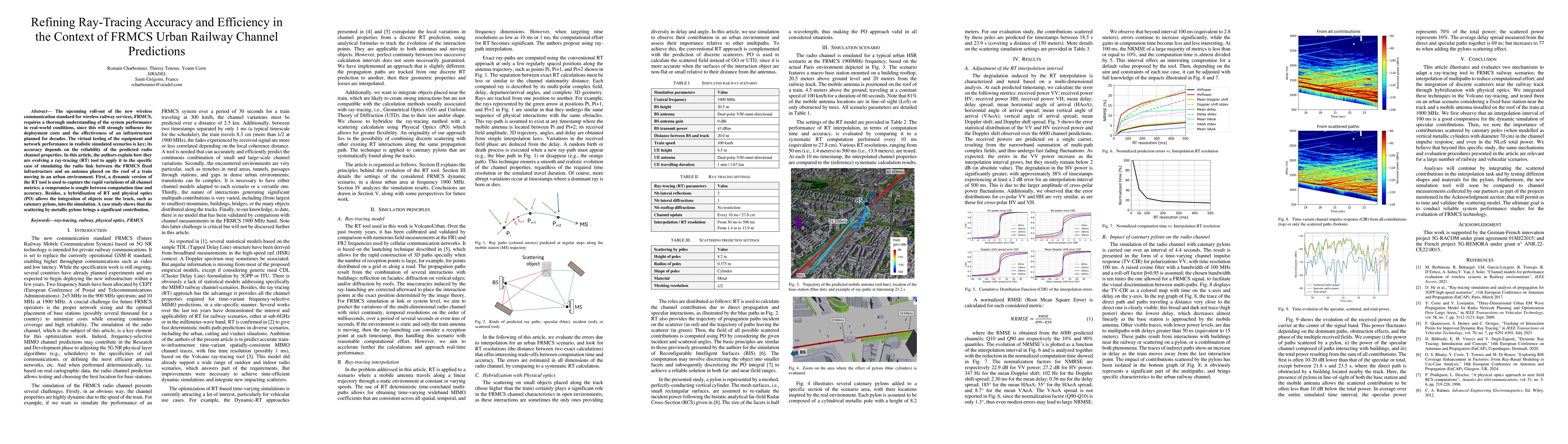 The upcoming roll-out of the new wireless communication standard for wireless railway services, FRMCS, requires a thorough understanding of the system performance in real-world conditions, since this will strongly influence the deployment costs and the effectiveness of an infrastructure planned for decades. The virtual testing of the equipment and network performance in realistic simulated scenarios is key; its accuracy depends on the reliability of the predicted radio channel properties. In this article, the authors explain how they are evolving a ray-tracing (RT) tool to apply it to the specific case of simulating the radio link between the FRMCS fixed infrastructure and an antenna placed on the roof of a train moving in an urban environment. First, a dynamic version of the RT tool is used to capture the rapid variations of all channel metrics; a compromise is sought between computation time and accuracy. Besides, a hybridization of RT and physical optics (PO) allows the integration of objects near the track, such as catenary pylons, into the simulation. A case study shows that the scattering by metallic pylons brings a significant contribution.
