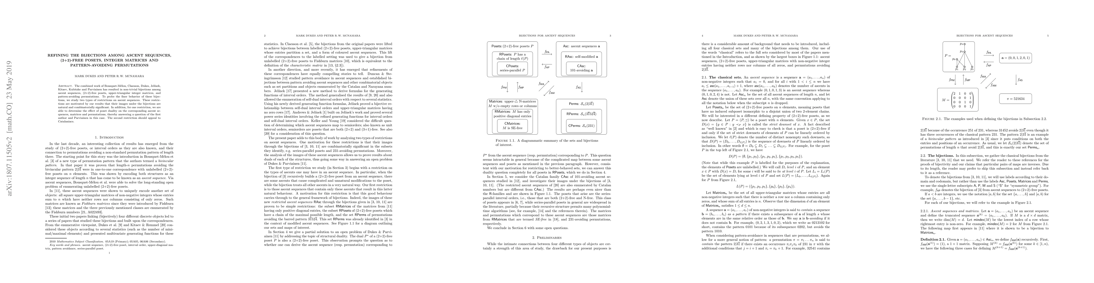 This paper refines existing bijections between ascent sequences, (2+2)-free posets, upper-triangular integer matrices, and pattern-avoiding permutations, by exploring two specific restrictions on ascent sequences. The study reveals significant combinatorial implications of these restrictions, and answers a question posed by the authors regarding poset duality effects.