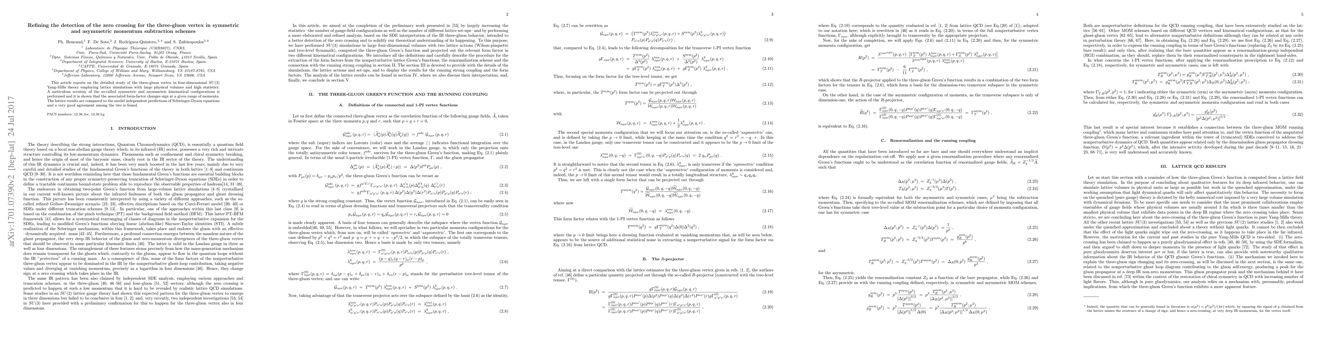 This article reports on the detailed study of the three-gluon vertex in four-dimensional $SU(3)$ Yang-Mills theory employing lattice simulations with large physical volumes and high statistics. A meticulous scrutiny of the so-called symmetric and asymmetric kinematical configurations is performed and it is shown that the associated form-factor changes sign at a given range of momenta. The lattice results are compared to the model independent predictions of Schwinger-Dyson equations and a very good agreement among the two is found.