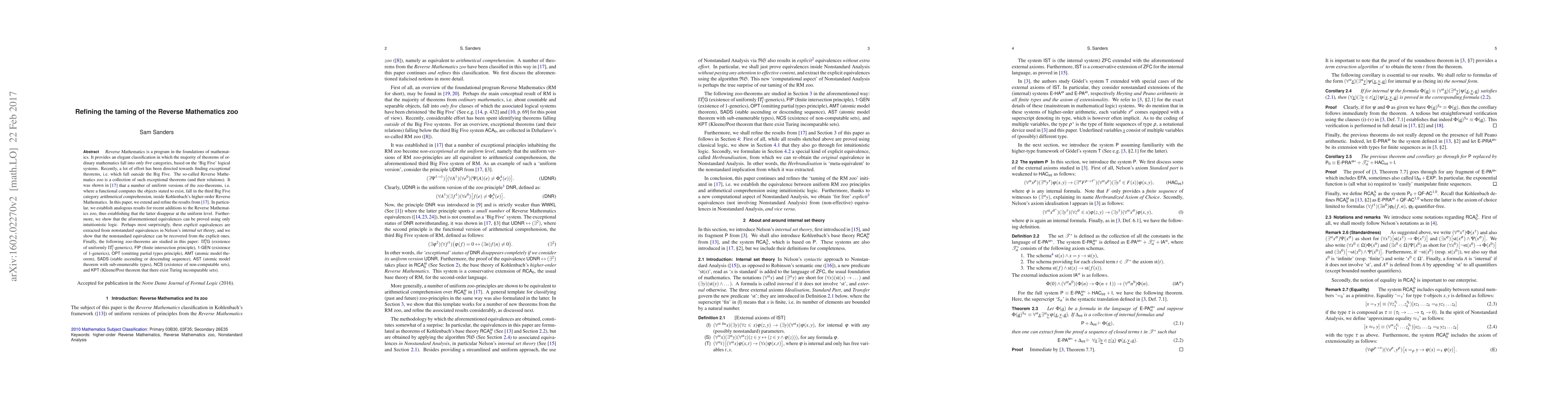 Reverse Mathematics is a program in the foundations of mathematics. It provides an elegant classification in which the majority of theorems of ordinary mathematics fall into only five categories, based on the 'Big Five' logical systems. Recently, a lot of effort has been directed towards finding exceptional theorems, i.e. which fall outside the Big Five. The so-called Reverse Mathematics zoo is a collection of such exceptional theorems (and their relations). It was shown in [17] that a number of uniform versions of the zoo-theorems, i.e. where a functional computes the objects stated to exist, fall in the third Big Five category arithmetical comprehension, inside Kohlenbach's higher-order Reverse Mathematics. In this paper, we extend and refine the results from [17]. In particular, we establish analogous results for recent additions to the Reverse Mathematics zoo, thus establishing that the latter disappear at the uniform level. Furthermore, we show that the aforementioned equivalences can be proved using only intuitionistic logic. Perhaps most surprisingly, these explicit equivalences are extracted from nonstandard equivalences in Nelson's internal set theory, and we show that the nonstandard equivalence can be recovered from the explicit ones.