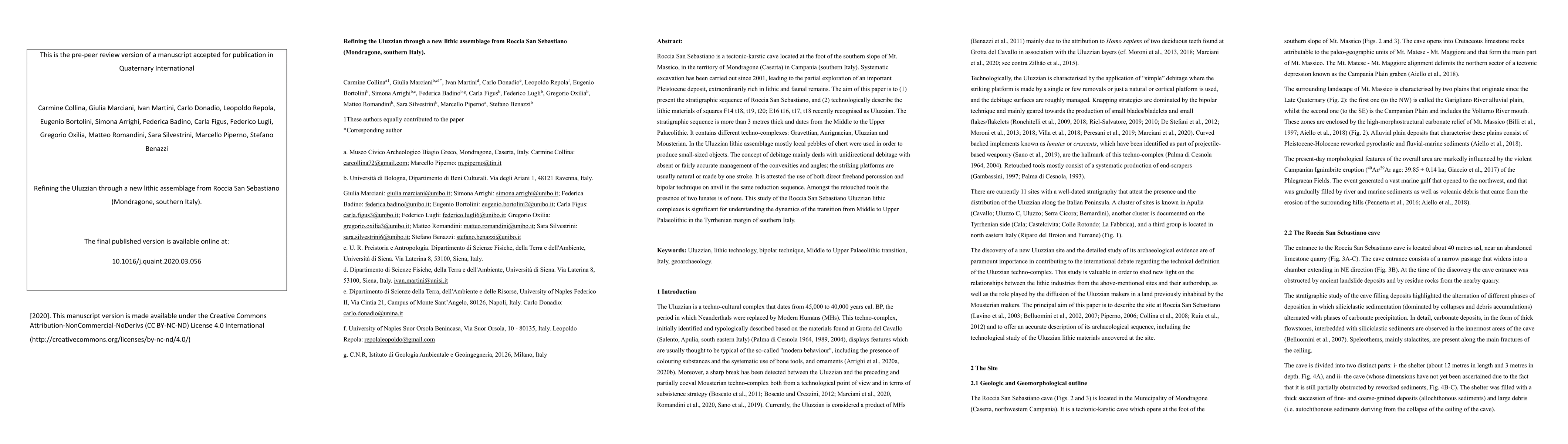 This paper presents the stratigraphic sequence of Roccia San Sebastiano, detailing the lithic materials from recently identified Uluzzian layers. The study highlights the use of local chert to produce small-sized objects, with a focus on unidirectional debitage and the application of both direct percussion and bipolar techniques.