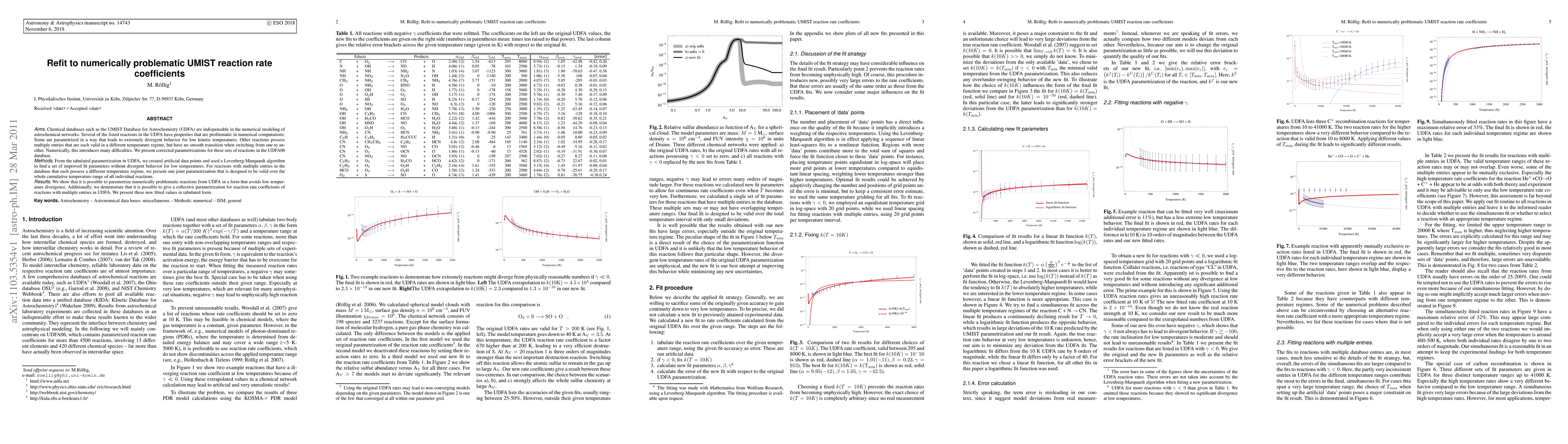 Aims. Chemical databases such as the UMIST Database for Astrochemistry (UDFA) are indispensable in the numerical modeling of astrochemical networks. Several of the listed reactions in the UDFA have properties that are problematic in numerical computations: Some are parametrized in a way that leads to extremely divergent behavior for low kinetic temperatures. Other reactions possess multiple entries that are each valid in a different temperature regime, but have no smooth transition when switching from one to another. Numerically, this introduces many difficulties.We present corrected parametrizations for these sets of reactions in the UDFA06 database. Methods. From the tabulated parametrization in UDFA, we created artificial data points and used a Levenberg-Marquardt algorithm to find a set of improved fit parameters without divergent behavior for low temperatures. For reactions with multiple entries in the database that each possess a different temperature regime, we present one joint parametrization that is designed to be valid over the whole cumulative temperature range of all individual reactions. Results. We show that it is possible to parametrize numerically problematic reactions from UDFA in a form that avoids low temperature divergence. Additionally, we demonstrate that it is possible to give a collective parametrization for reaction rate coefficients of reactions with multiple entries in UDFA. We present these new fitted values in tabulated form.
