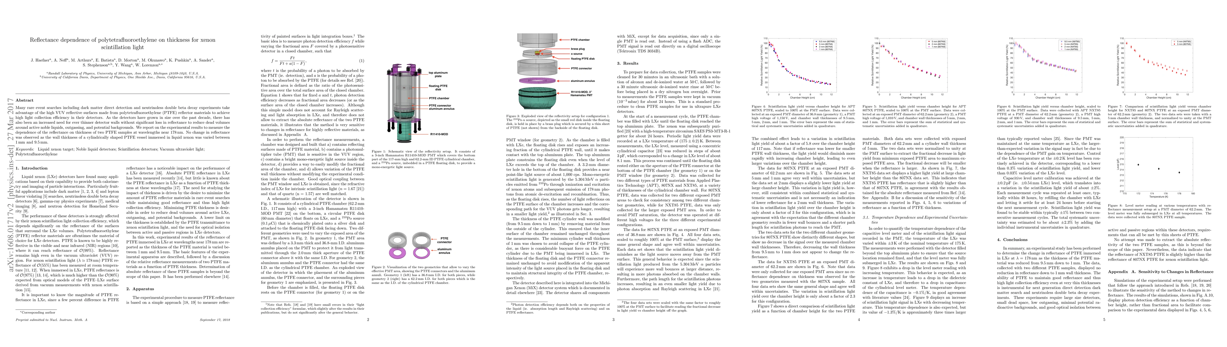 This study investigates the reflectance of polytetrafluoroethylene (PTFE) at varying thicknesses for xenon scintillation light at wavelengths near 178 nm. Experimental results show no change in reflectance as the PTFE thickness varied from 1 mm to 9.5 mm, indicating consistent performance in thin detector walls.