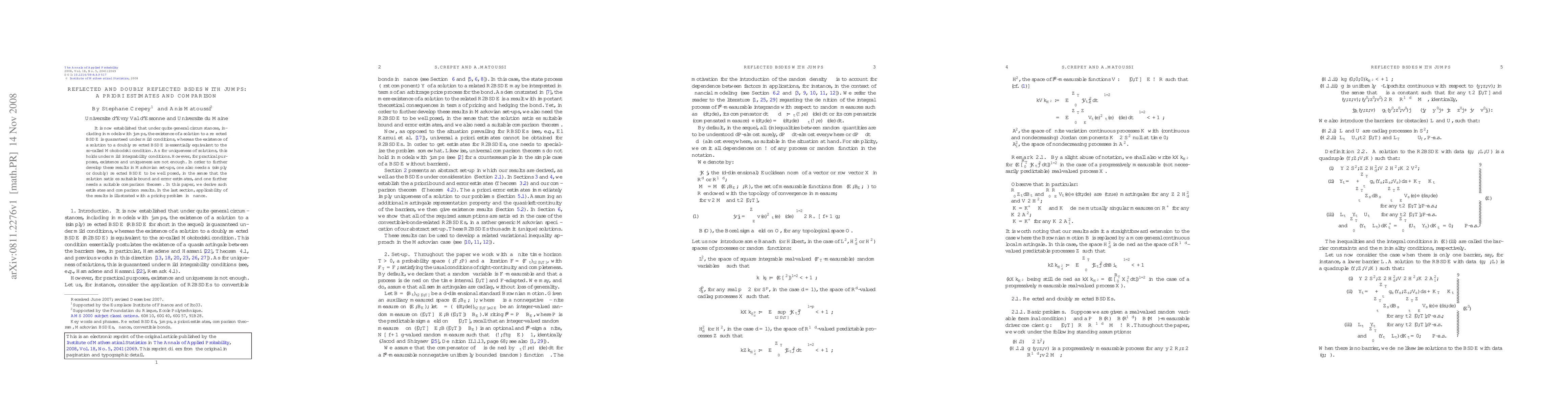 This paper establishes existence and uniqueness of solutions for reflected and doubly reflected BSDEs with jumps, under mild conditions. It also provides a priori estimates and a comparison theorem, crucial for practical applications, and demonstrates their use in a financial pricing problem.