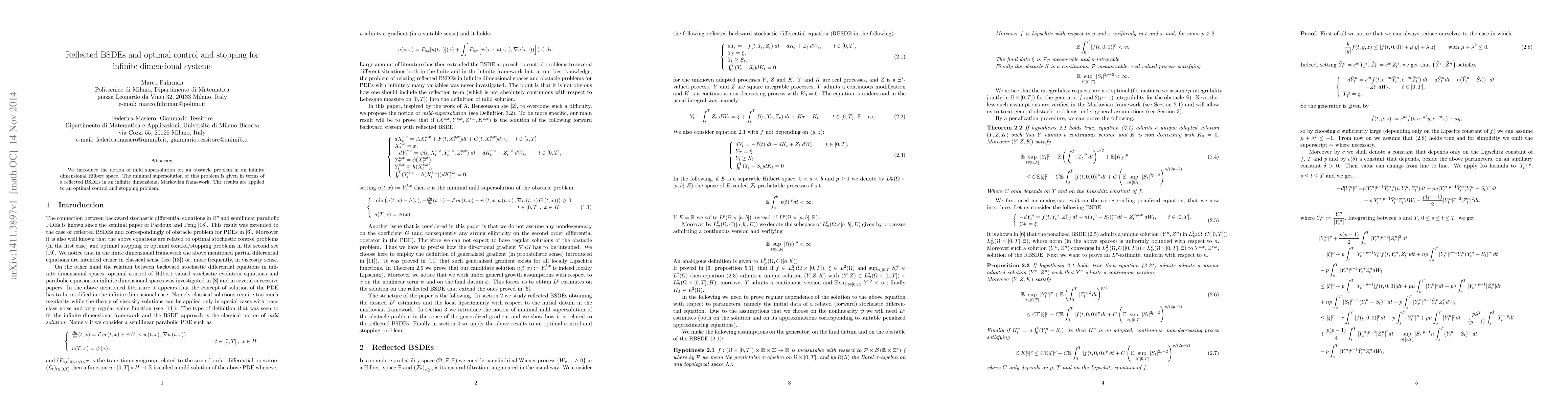 Summary: This paper defines a mild supersolution for an obstacle problem in infinite-dimensional Hilbert spaces and presents its minimal form via reflected BSDEs within a Markovian framework, subsequently applying these results to optimal control and stopping problems.