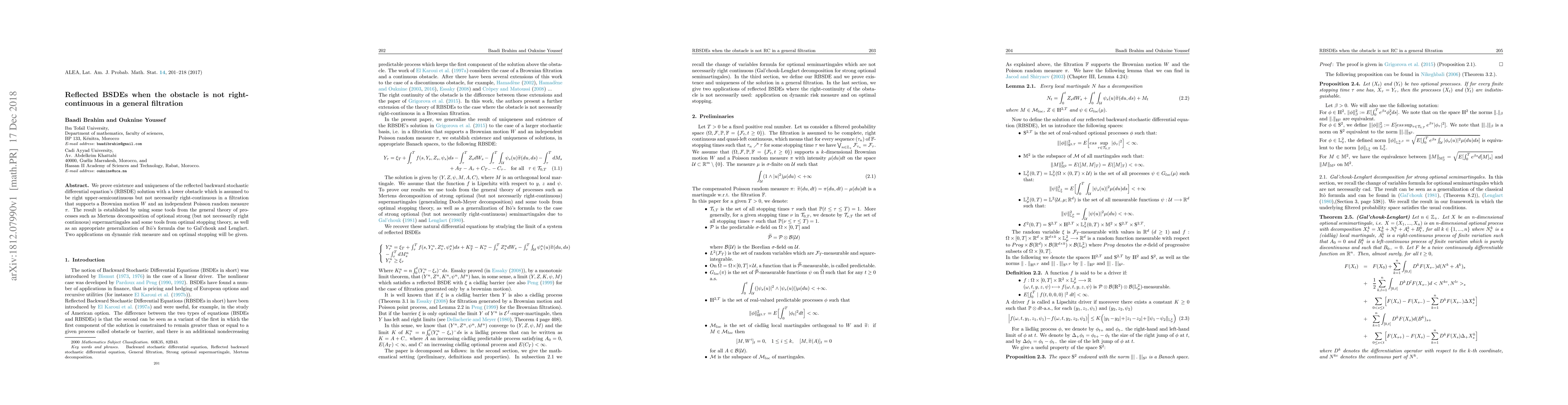 We prove existence and uniqueness of the reflected backward stochastic differential equation's (RBSDE) solution with a lower obstacle which is assumed to be right upper-semicontinuous but not necessarily right-continuous in a filtration that supports a Brownian motion $W$ and an independent Poisson random measure $\pi$. The result is established by using some tools from the general theory of processes such as Mertens decomposition of optional strong (but not necessarily right continuous) supermartingales and some tools from optimal stopping theory, as well as an appropriate generalization of It\^{o}'s formula due to Gal'chouk and Lenglart. Two applications on dynamic risk measure and on optimal stopping will be given.