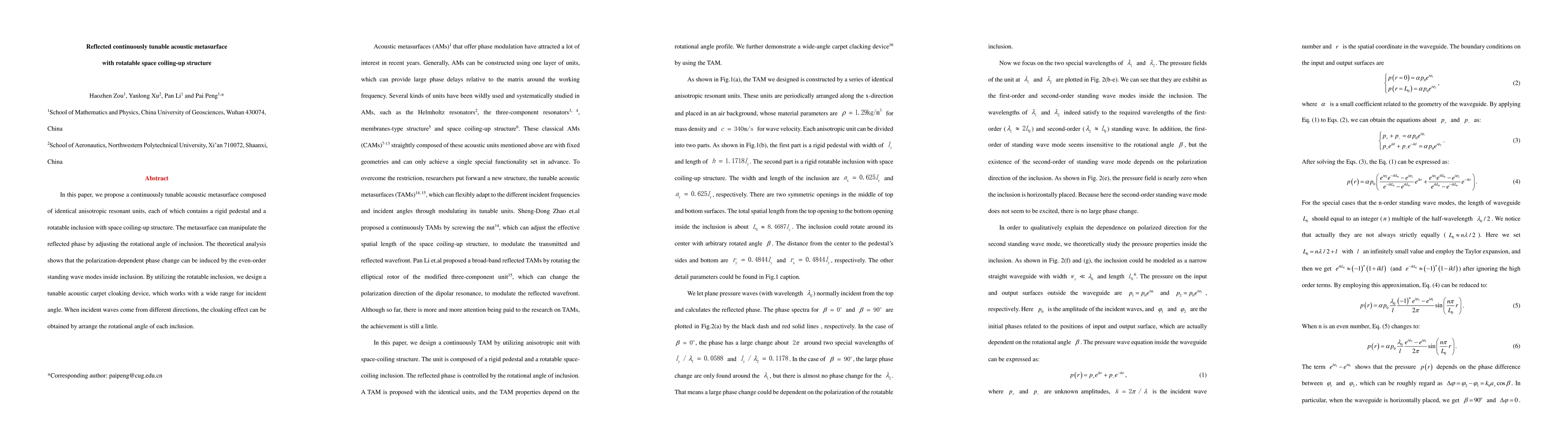 This paper introduces a continuously tunable acoustic metasurface utilizing anisotropic resonant units with rotatable space coiling-up structures to manipulate reflected phase. The inclusion's rotation induces polarization-dependent phase changes, enabling the design of a tunable acoustic cloaking device effective for a wide range of incident angles.
