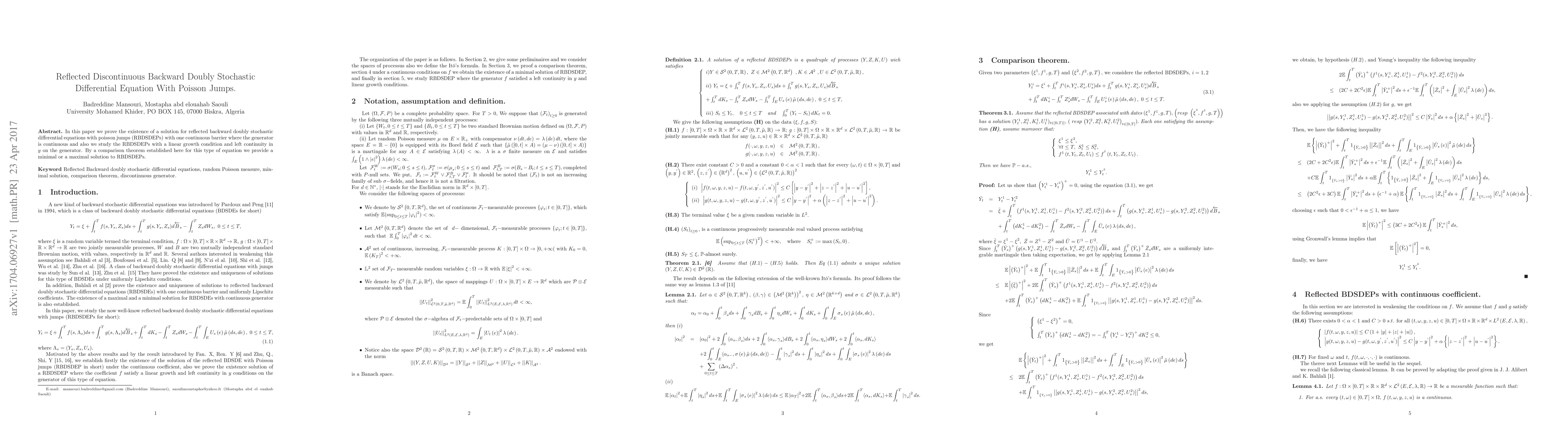 This paper proves the existence of solutions for reflected backward doubly stochastic differential equations with Poisson jumps (RBDSDEPs) and establishes a comparison theorem to provide minimal or maximal solutions under specified conditions. The study also examines RBDSDEPs with a linear growth condition and left continuity in the generator.
