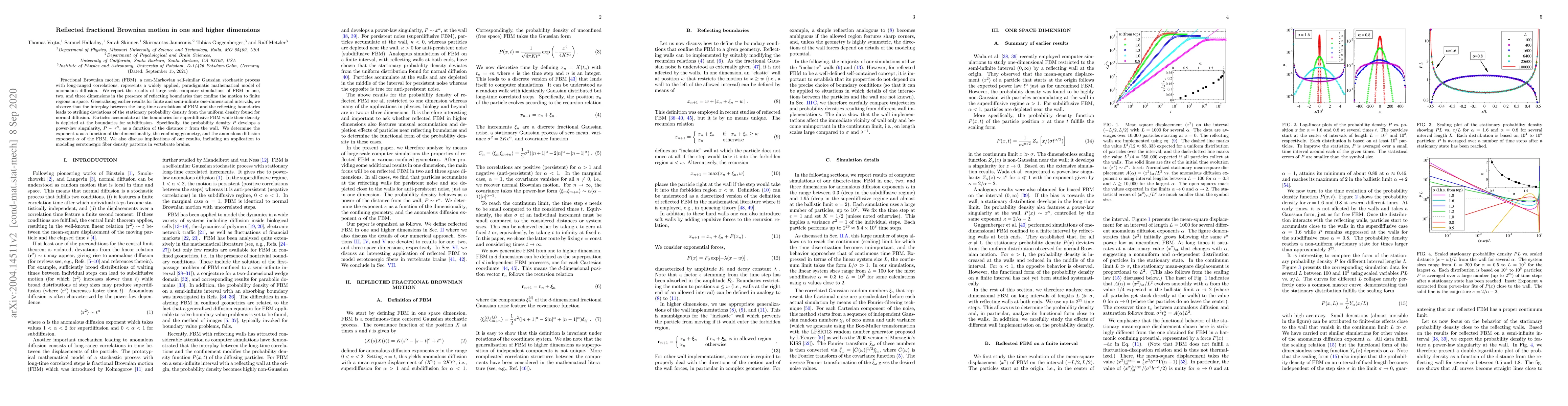 Fractional Brownian motion (FBM), a non-Markovian self-similar Gaussian stochastic process with long-ranged correlations, represents a widely applied, paradigmatic mathematical model of anomalous diffusion. We report the results of large-scale computer simulations of FBM in one, two, and three dimensions in the presence of reflecting boundaries that confine the motion to finite regions in space. Generalizing earlier results for finite and semi-infinite one-dimensional intervals, we observe that the interplay between the long-time correlations of FBM and the reflecting boundaries leads to striking deviations of the stationary probability density from the uniform density found for normal diffusion. Particles accumulate at the boundaries for superdiffusive FBM while their density is depleted at the boundaries for subdiffusion. Specifically, the probability density $P$ develops a power-law singularity, $P\sim r^\kappa$, as function of the distance $r$ from the wall. We determine the exponent $\kappa$ as function of the dimensionality, the confining geometry, and the anomalous diffusion exponent $\alpha$ of the FBM. We also discuss implications of our results, including an application to modeling serotonergic fiber density patterns in vertebrate brains.