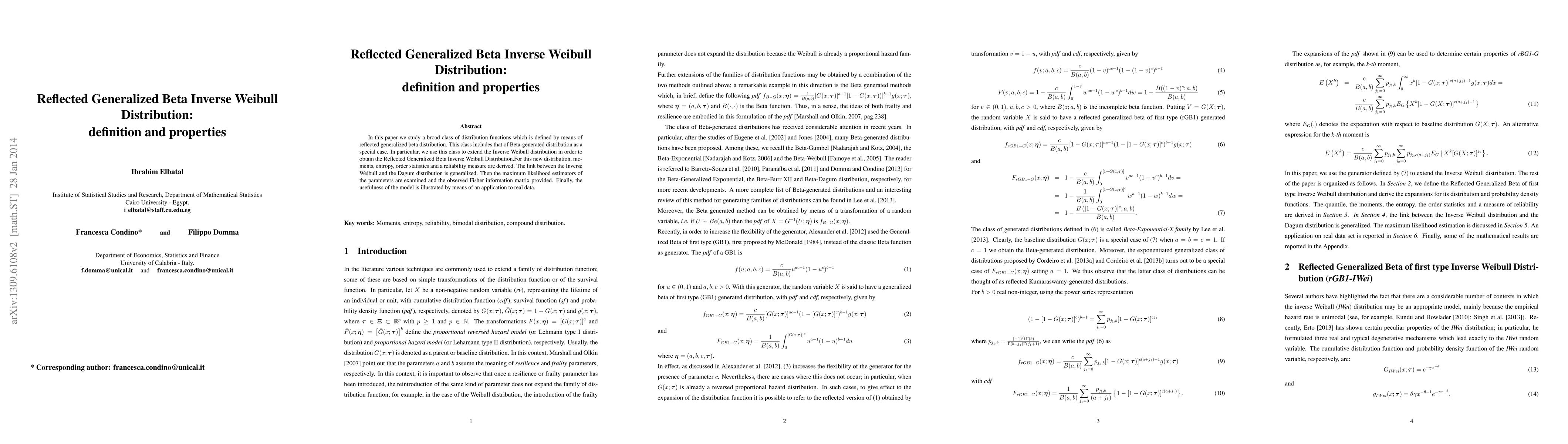 In this paper we study a broad class of distribution functions which is defined by means of reflected generalized beta distribution. This class includes that of Beta-generated distribution as a special case. In particular, we use this class to extend the Inverse Weibull distribution in order to obtain the Reflected Generalized Beta Inverse Weibull Distribution.For this new distribution, moments, entropy, order statistics and a reliability measure are derived. The link between the Inverse Weibull and the Dagum distribution is generalized. Then the maximum likelihood estimators of the parameters are examined and the observed Fisher information matrix provided. Finally, the usefulness of the model is illustrated by means of an application to real data.