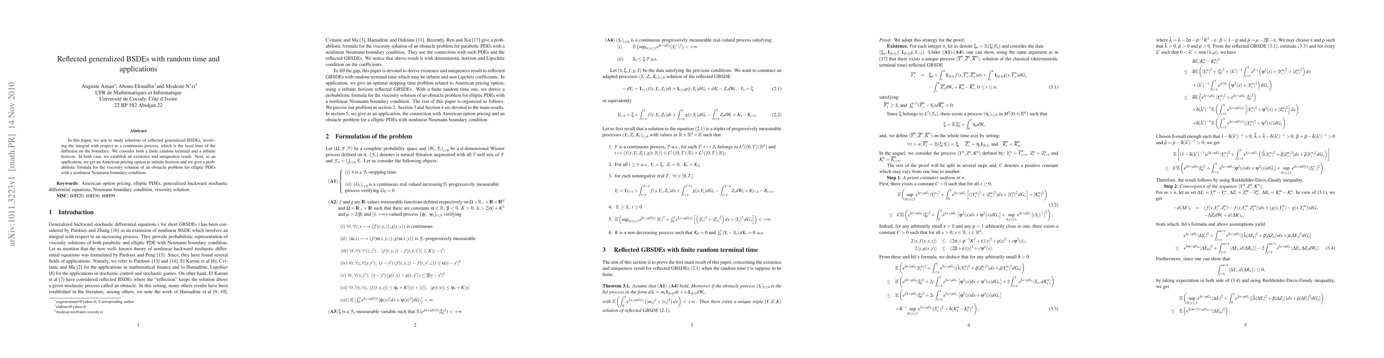 This paper investigates reflected generalized backward stochastic differential equations (BSDEs) with random time, establishing existence and uniqueness results for both finite and infinite horizons. Applications include American option pricing and a probabilistic formula for the viscosity solution of elliptic PDEs with nonlinear Neumann boundary conditions.