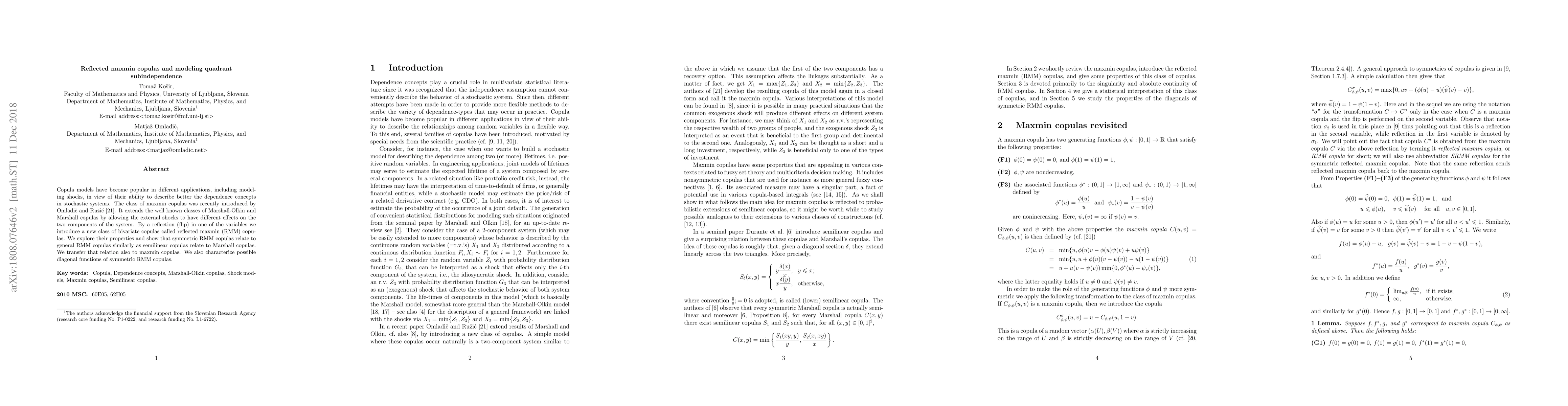 Copula models have become popular in different applications, including modeling shocks, in view of their ability to describe better the dependence concepts in stochastic systems. The class of maxmin copulas was recently introduced by Omladi\v{c} and Ru\v{z}i\'{c}. It extends the well known classes of Marshall-Olkin and Marshall copulas by allowing the external shocks to have different effects on the two components of the system. By a reflection (flip) in one of the variables we introduce a new class of bivariate copulas called reflected maxmin (RMM) copulas. We explore their properties and show that symmetric RMM copulas relate to general RMM copulas similarly as do semilinear copulas relate to Marshall copulas. We transfer that relation also to maxmin copulas. We also characterize possible diagonal functions of symmetric RMM copulas.