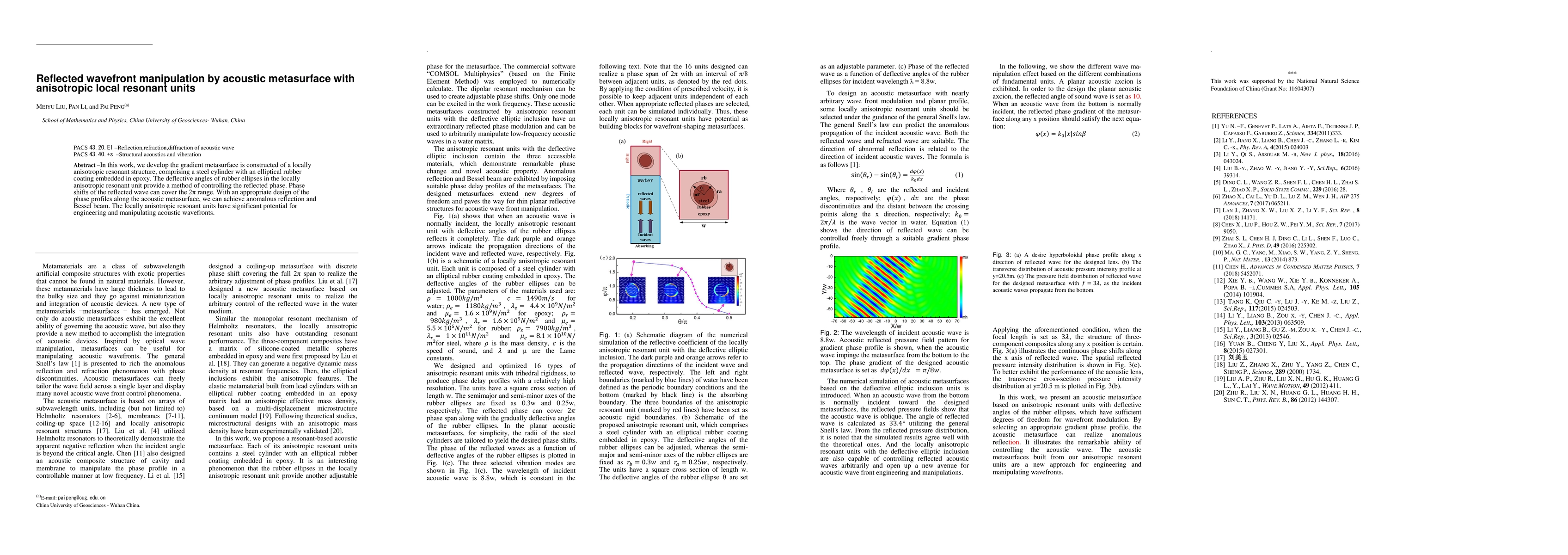 This research develops an acoustic metasurface using anisotropic resonant units made of steel cylinders with elliptical rubber coatings to manipulate reflected wavefronts. The design enables phase shifts across the full 2π range, allowing for anomalous reflection and generation of Bessel beams, showing great potential for acoustic wavefront engineering.