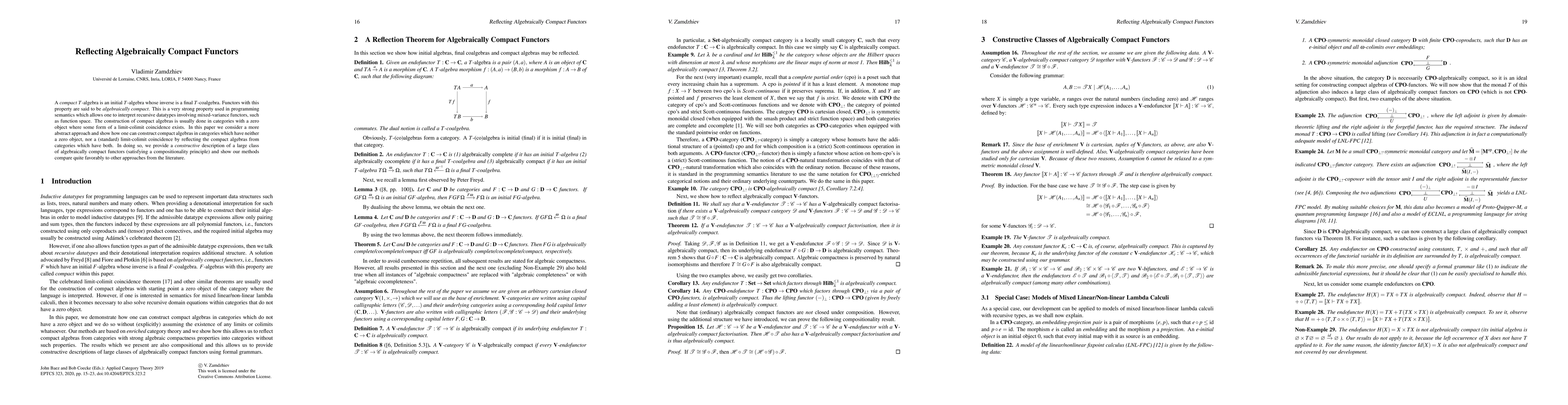 A compact T-algebra is an initial T-algebra whose inverse is a final T-coalgebra. Functors with this property are said to be algebraically compact. This is a very strong property used in programming semantics which allows one to interpret recursive datatypes involving mixed-variance functors, such as function space. The construction of compact algebras is usually done in categories with a zero object where some form of a limit-colimit coincidence exists. In this paper we consider a more abstract approach and show how one can construct compact algebras in categories which have neither a zero object, nor a (standard) limit-colimit coincidence by reflecting the compact algebras from categories which have both. In doing so, we provide a constructive description of a large class of algebraically compact functors (satisfying a compositionality principle) and show our methods compare quite favorably to other approaches from the literature.