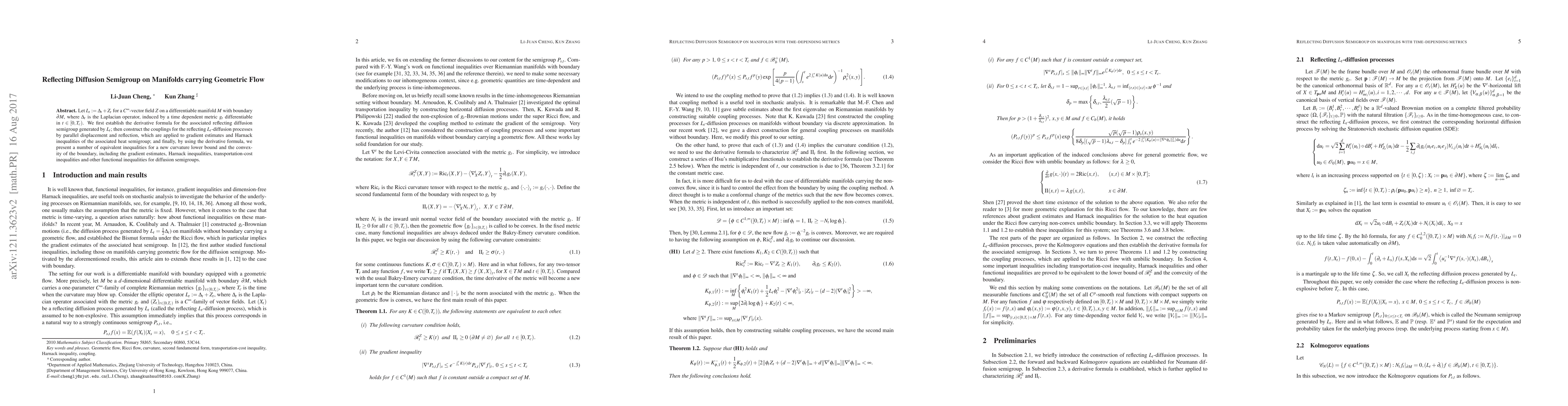 Let $L_t:=\Delta_t+Z_t$ for a $C^{1,1}$-vector field $Z$ on a differential manifold $M$ with boundary $\partial M$, where $\Delta_t$ is the Laplacian induced by a time dependent metric $g_t$ differentiable in $t\in [0,T_c)$. We first introduce the reflecting diffusion process generated by $L_t$ and establish the derivative formula for the associated diffusion semigroup; then construct the couplings for the reflecting $L_t$-diffusion processes by parallel and reflecting displacement, which implies the gradient estimates of the associated heat semigroup; and finally, present a number of equivalent inequalities for the curvature lower bound and the convexity of the boundary, including the gradient estimations, Harnack inequalities, transportation-cost inequalities and other functional inequalities for diffusion semigroup.