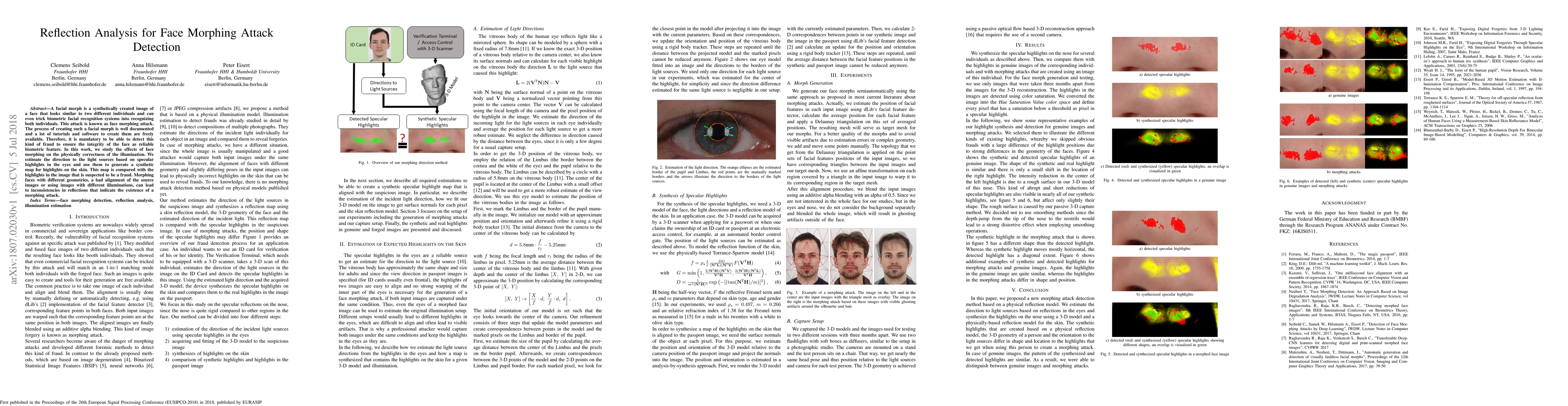 This paper investigates the detection of face morphing attacks by analyzing inconsistencies in illumination reflections. It proposes a method to estimate light source directions from specular highlights in the eyes and compares these with synthetic maps to identify morphed faces.