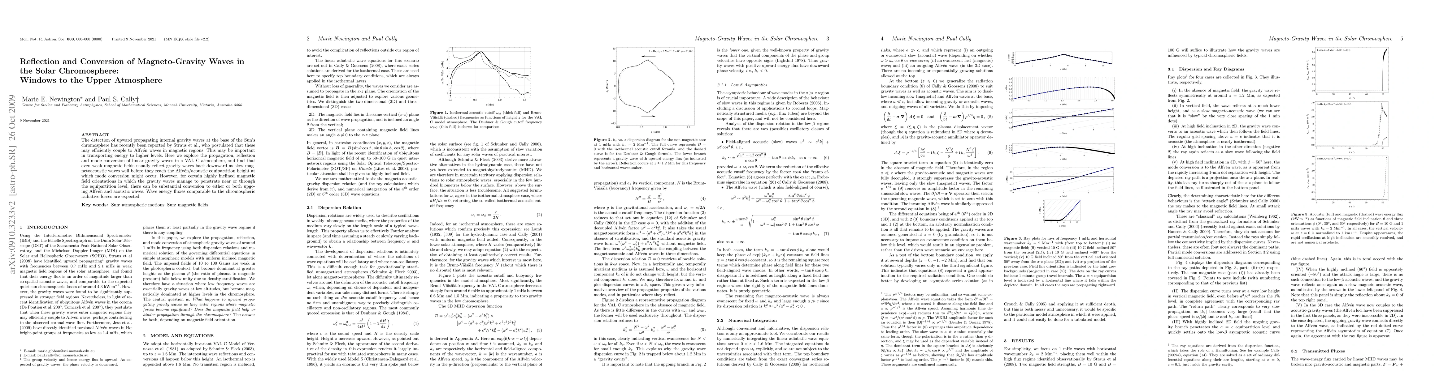 The detection of upward propagating internal gravity waves at the base of the Sun's chromosphere has recently been reported by Straus et al., who postulated that these may efficiently couple to Alfven waves in magnetic regions. This may be important in transporting energy to higher levels. Here we explore the propagation, reflection and mode conversion of linear gravity waves in a VAL C atmosphere, and find that even weak magnetic fields usually reflect gravity waves back downward as slow magnetoacoustic waves well before they reach the Alfven/acoustic equipartition height at which mode conversion might occur. However, for certain highly inclined magnetic field orientations in which the gravity waves manage to penetrate near or through the equipartition level, there can be substantial conversion to either or both upgoing Alfven and acoustic waves. Wave energy fluxes comparable to the chromospheric radiative losses are expected.