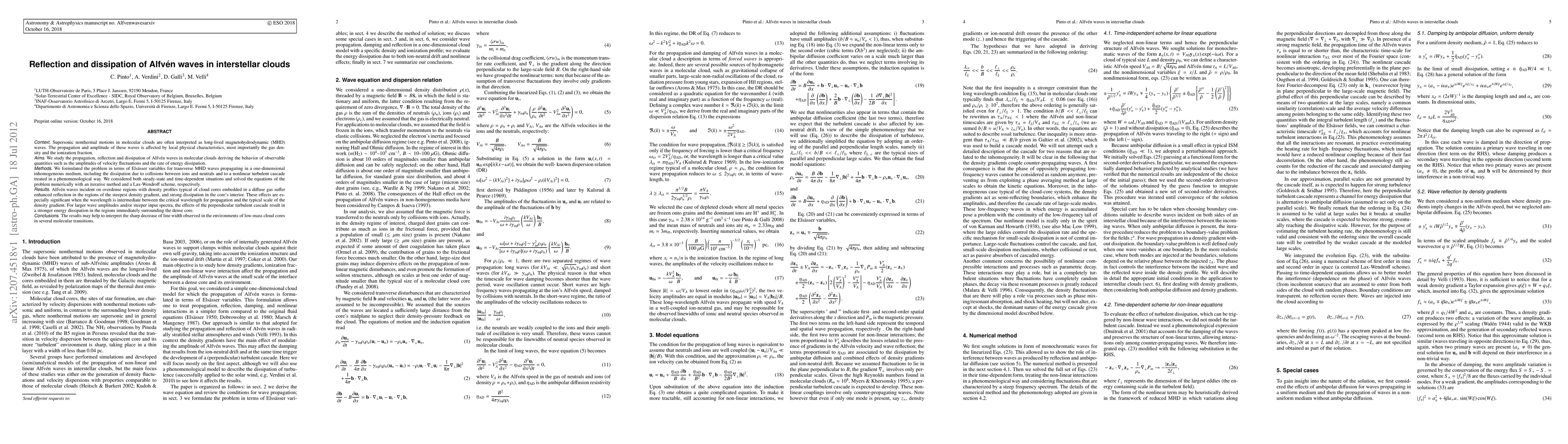 Alfvén waves in molecular clouds are reflected and dissipated more strongly near dense cores, leading to a sharp decrease in line widths of certain molecular transitions.