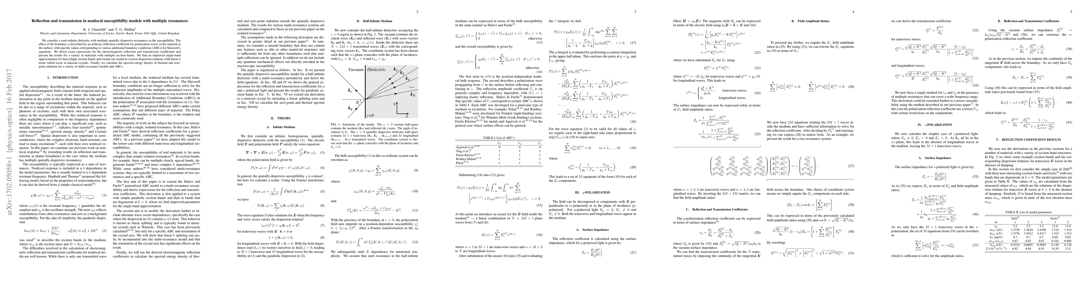 This paper derives exact expressions for electromagnetic reflection and transmission coefficients in a semi-infinite dielectric with multiple spatially dispersive resonances, considering various boundary conditions. It also improves the single-band approximation for exciton bands and calculates the spectral energy density for thermal and zero-point radiation in multi-resonance models.