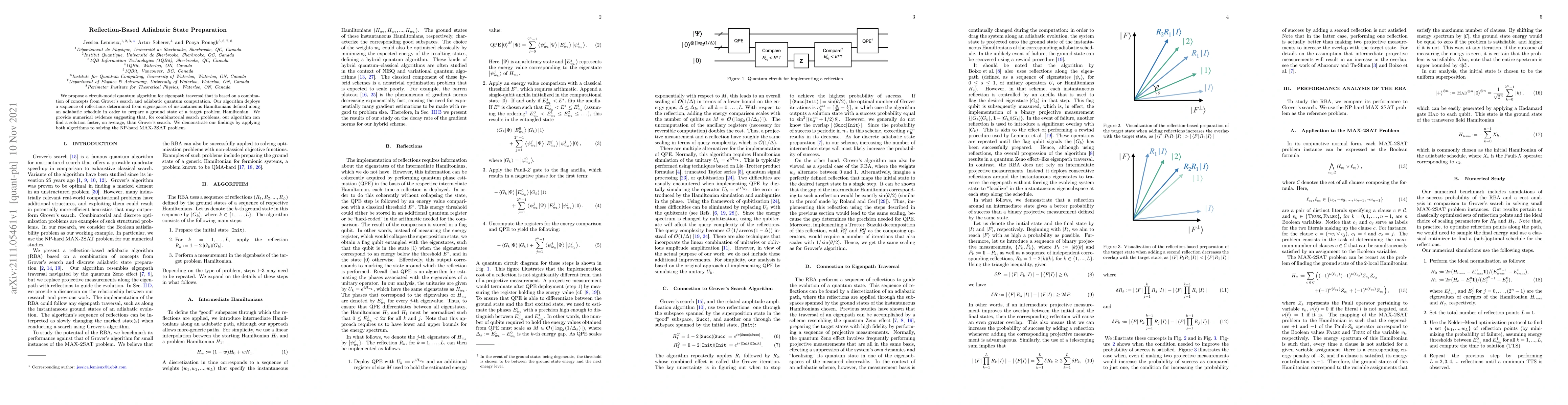 We propose a circuit-model quantum algorithm for eigenpath traversal that is based on a combination of concepts from Grover's search and adiabatic quantum computation. Our algorithm deploys a sequence of reflections determined from eigenspaces of instantaneous Hamiltonians defined along an adiabatic schedule in order to prepare a ground state of a target problem Hamiltonian. We provide numerical evidence suggesting that, for combinatorial search problems, our algorithm can find a solution faster, on average, than Grover's search. We demonstrate our findings by applying both algorithms to solving the NP-hard MAX-2SAT problem.