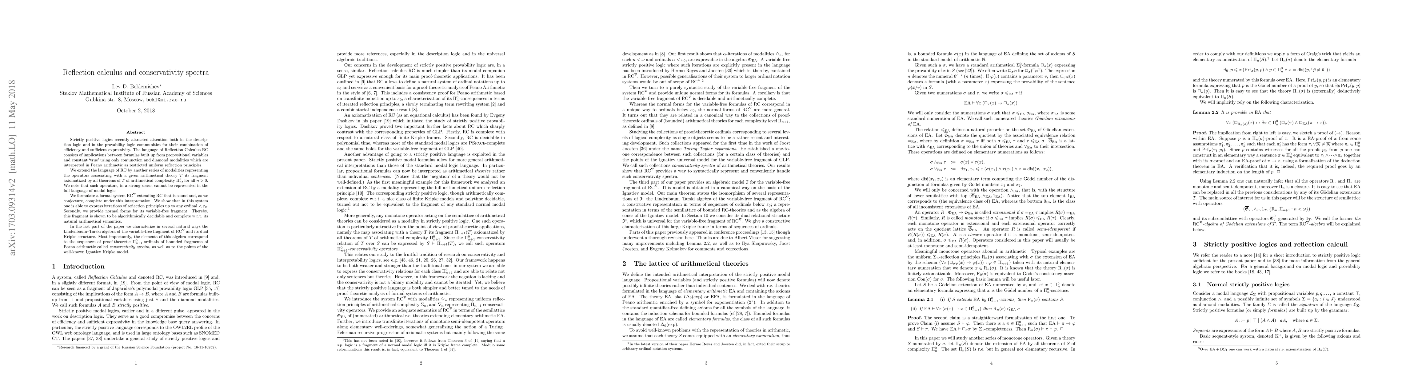 Strictly positive logics recently attracted attention both in the description logic and in the provability logic communities for their combination of efficiency and sufficient expressivity. The language of Reflection Calculus RC consists of implications between formulas built up from propositional variables and constant `true' using only conjunction and diamond modalities which are interpreted in Peano arithmetic as restricted uniform reflection principles. We extend the language of RC by another series of modalities representing the operators associating with a given arithmetical theory T its fragment axiomatized by all theorems of T of arithmetical complexity $\Pi^0_n$, for all n>0. We note that such operators, in a precise sense, cannot be represented in the full language of modal logic. We formulate a formal system RC$^\nabla$ extending RC that is sound and, as we conjecture, complete under this interpretation. We show that in this system one is able to express iterations of reflection principles up to any ordinal $<\epsilon_0$. On the other hand, we provide normal forms for its variable-free fragment. Thereby, the variable-free fragment is shown to be decidable and complete w.r.t. its natural arithmetical semantics. Whereas the normal forms for the variable-free formulas of RC correspond in a unique way to ordinals below $\epsilon_0$, the normal forms of RC$^\nabla$ are more general. It turns out that they are related in a canonical way to the collections of proof-theoretic ordinals of (bounded) arithmetical theories for each complexity level $\Pi^0_{n+1}$. Finally, we present an algebraic universal model for the variable-free fragment of RC$^\nabla$ based on Ignatiev's Kripke frame. Our main theorem states the isomorphism of several natural representations of this algebra.