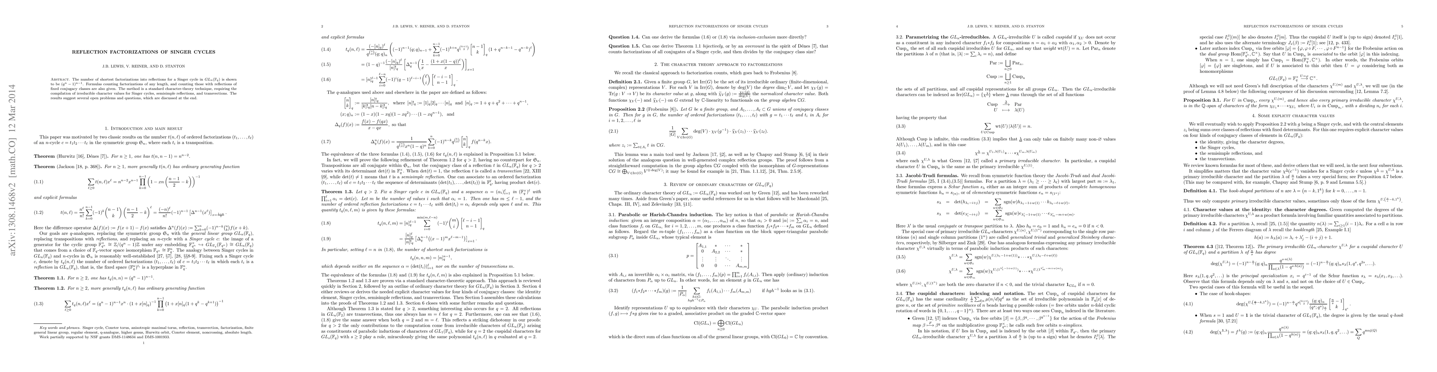 The number of shortest factorizations into reflections for a Singer cycle in GL_n(F_q) is shown to be (q^n-1)^(n - 1). Formulas counting factorizations of any length, and counting those with reflections of fixed conjugacy classes are also given. The method is a standard character-theory technique, requiring the compilation of irreducible character values for Singer cycles, semisimple reflections, and transvections. The results suggest several open problems and questions, which are discussed at the end.