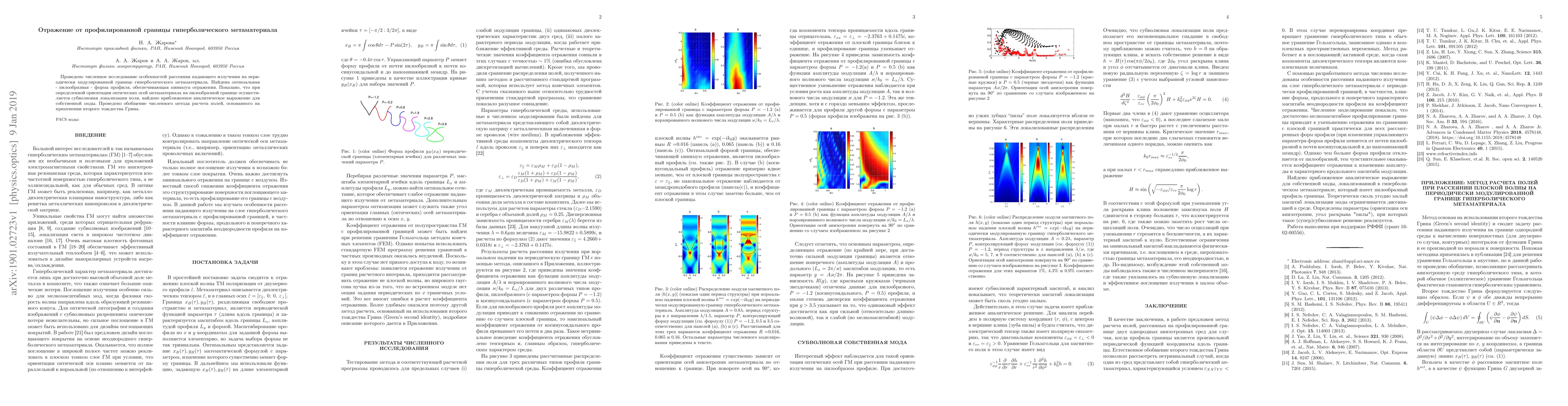 A numerical study of the features of the scattering of incident radiation at a periodically modulated hyperbolic metamaterial boundary was carried out. We have found optimal - sawtooth-shaped profile of the interface which provides minimal reflection. It is shown that at a certain orientation of the optical axes of the metamaterial, a subwave localization of the field occurs at the saw-tooth interface. An approximate analytical expression for the eigenmode was found. A generalization of the numerical method is implemented for calculating fields, based on the application of the Green's second identity.