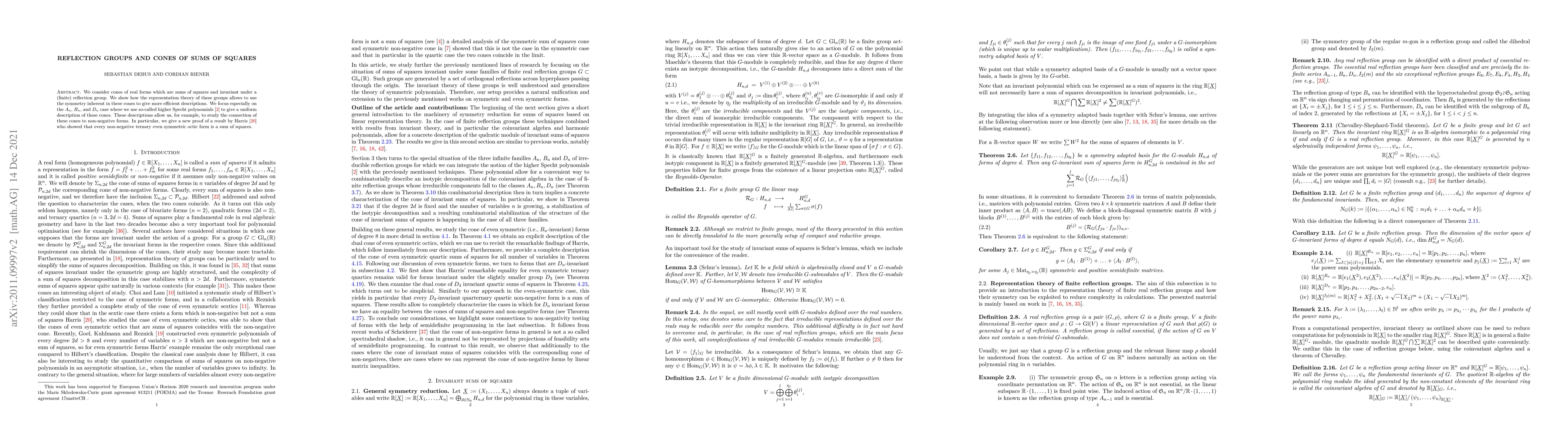 Researchers developed a new method to describe cones of sums of squares forms using representation theory, allowing for more efficient analysis and connections to non-negative forms.