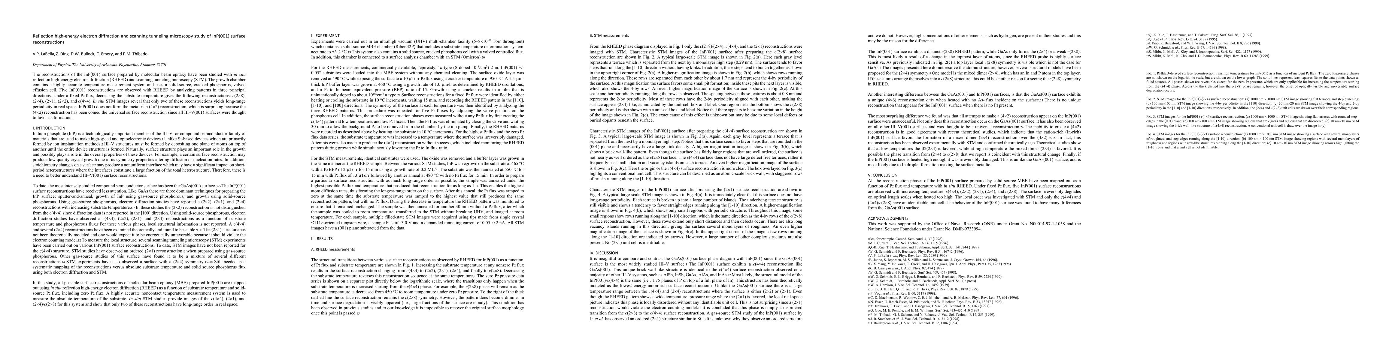 This paper studies the surface reconstructions of InP(001) using reflection high-energy electron diffraction (RHEED) and scanning tunneling microscopy (STM). It reveals five reconstructions with varying substrate temperatures, and identifies that only two have long-range periodicity, challenging the notion that the (4x2) reconstruction is universal for III-V(001) surfaces.